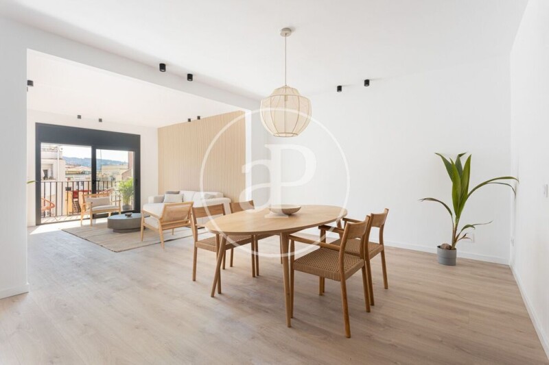 Fantastic, renovated apartment ready to move into, located on the 6th floor of a 1967 building, in very good condition on Valencia Street, Nova Esquerra de l'Eixample. The house is distributed in an entrance hall, open kitchen, dining room, living room, 4 double bedrooms, 3 bathrooms (2 of them en suite) and a laundry room. The living room has a large window through which you access the large balcony-terrace with a cozy atmosphere and fantastic views of Montjuïc. The kitchen is spacious and has BOSCH appliances: oven, induction hob and extractor hood and integrated dishwasher. The countertop is made of Calacatta marble. The rest area is made up of 4 very spacious double bedrooms: two of them with en suite bathrooms. The master bedroom is spacious and bright; and has access to the balcony through a large window. The property has aluminum windows with thermal-acoustic insulation; and is heated with Mitsubishi air conditioning. The apartment is in an excellent location and is surrounded by all kinds of shops, green areas, Sants Station and very well connected by public transport to the rest of the city. Do not hesitate to contact us to arrange your visit!.