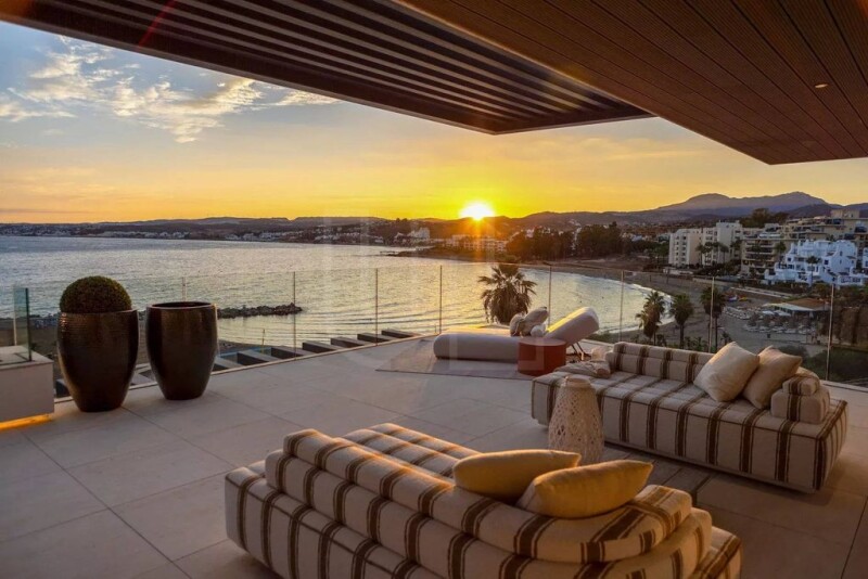 Luxury apartment located in a brand new development in Estepona with superb views of the Mediterranean. The middle floor 211 sq.m apartment is one of 9 apartments comprising a large open plan living / dining room with kitchen, 3 double bedrooms, 3 bathrooms and sunny west facing terrace with ample space including a chill out area, dining area and a private infinity style pool. The master suite benefits from a walk in wardrobe and spectacular sea views. The domotic system controls from a Smartphone or tablet the air conditioning, heating system, electric shutters, energy saving led light system with mood setting for each room, surround system for indoors and terraces, alarm installation and leakage detection. Other features include wifi, marble flooring, hardwood flooring in the bedrooms and underground parking. Communal facilities include a gym, a salt water chlorinated swimming pool, beautiful tropical gardens, chill out area, wooden pergolas and a private access to the beach.