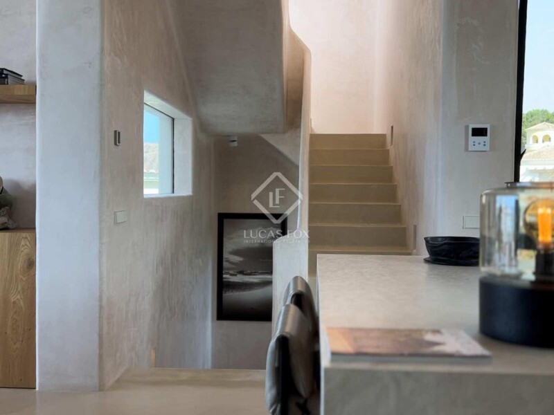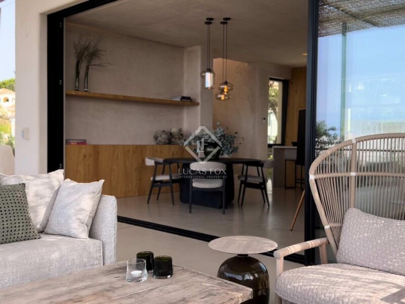 Ideally situated corner plot close to Elviria and 5 minutes walk to the best sandy beaches and chiringuito Simbad, this villa has 4 en-suite bedrooms with private terraces, an underground garage and basement, as well as a rooftop terrace with jacuzzi offering stunning sea views from Cabopino up to Hotel Don Carlos. The open-plan living area on the first floor includes a kitchen, guest toilet and designer wood fireplace opens up directly through the ceiling high and full width glass doors to an amazing covered terrace, also with great sea side views. The First Occupation Licence has been granted. Designed by a well known architect and built by a high quality construction company, this gem is finished with microcement floors throughout to create the ultimate inside-out living. The property boasts underfloor and swimming pool heating. Acoola Living decorated this signature property in a contemporary Mediterranean style, ready to move in for all year round living. Sold with all furniture & decoration, including art.