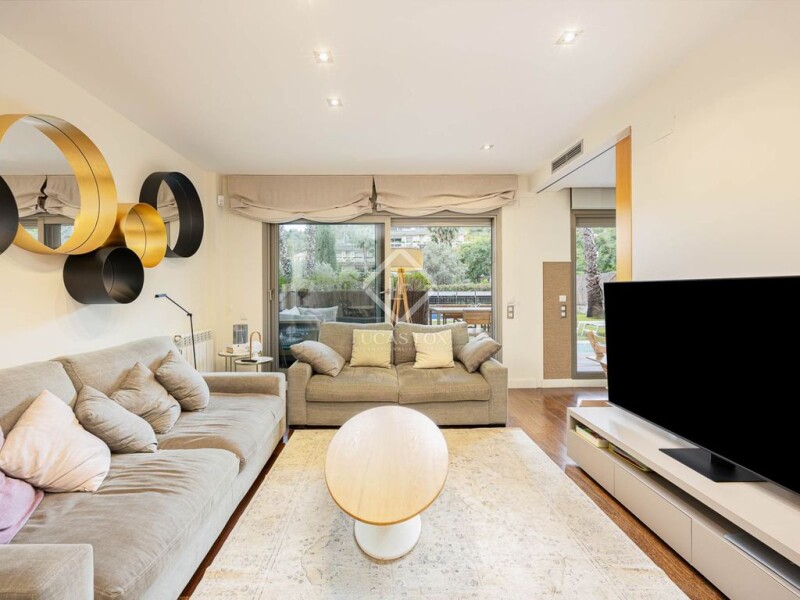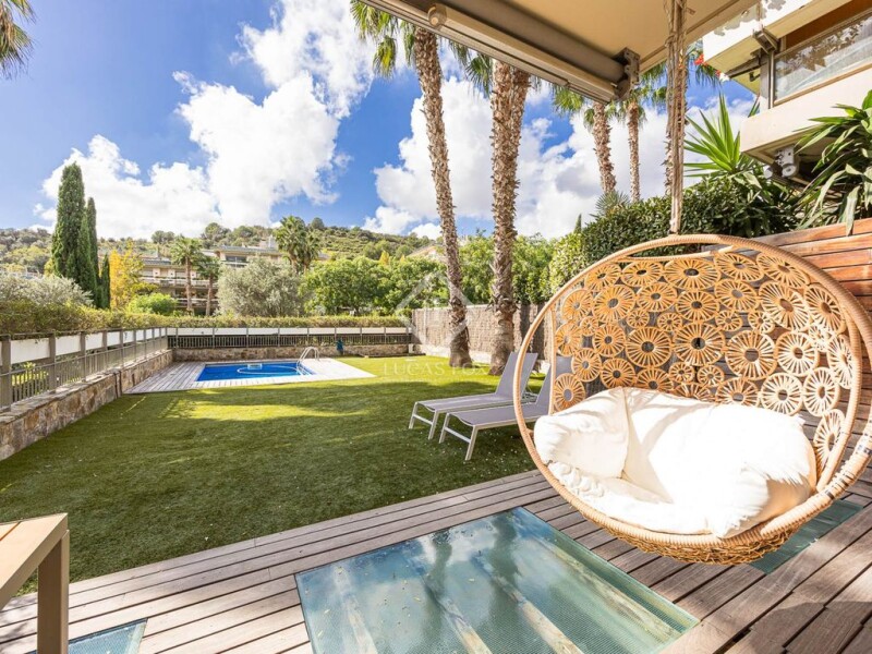 A unique opportunity to live in one of the most prestigious residential areas in Barcelona! This magnificent ground floor of 232 m² built, distributed on two levels, offers you an unrivalled lifestyle. On the upper floor , there are three bedrooms with direct access to the garden, including a suite with its own bathroom . In total, this floor has two complete bathrooms and a guest toilet. The day area includes a spacious living dining room living room , intelligently connected to the kitchen through a sliding door, allowing you to create an open space or two separate environments as you prefer. Both from the living room and the kitchen you can access the main garden , where a chill-out area, a wooden deck with an exterior dining room table and a private pool await you. The panoramic views of both the sea and the city of Barcelona are simply spectacular. On the lower floor , you will find a service room, a full bathroom , a utility room area and a large multipurpose room ideal for adapting to your needs. The price includes three covered parking spaces in a private garage. In addition, the development offers unbeatable amenities : a large communal swimming pool, tennis court, football pitch and garden areas full of flowers and colours that create an environment of tranquillity and well-being. Located in Torre Vilana, renowned for its exclusivity and high level of security, this property is perfect for those seeking a sophisticated lifestyle in Barcelona. Don't miss this unique opportunity to live in a privileged environment.