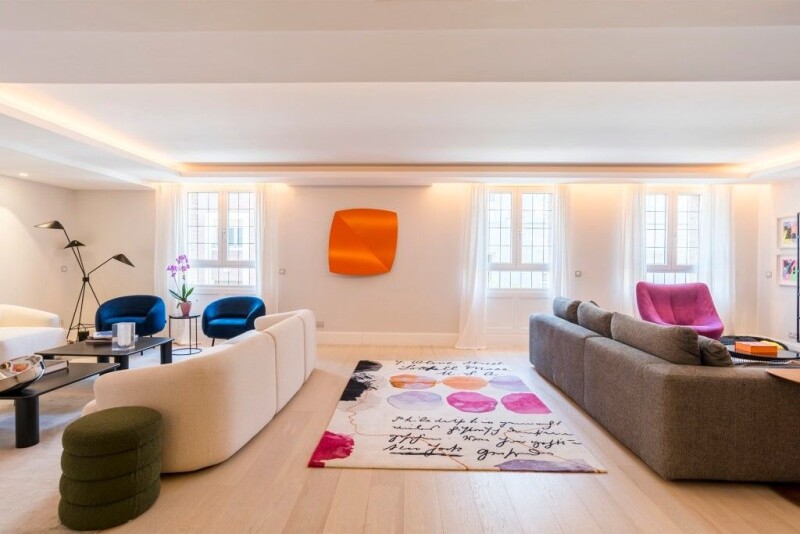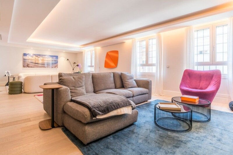 Magnificent residence for sale of 355 m2 built, plus two parking spaces in the same building, in one of the most unique and historic buildings in Madrid, located in the Salamanca District, a stone's throw from the American Embassy, in the heart of the Golden Mile, this majestic home, located in a building dating from 1923, has been completely renovated inside, respecting its imposing protected facade, ensuring its classic and sumptuous essence in the style of the old Toledan Palaces. Upon entering we are welcomed by a large entrance hall with 24 h security, from which we can appreciate a magnificent double staircase that gives access to the 6 floors plus attic and roof that make up this unique property, this luxury flat is located on the fifth floor of the building, its interior design maintains the essence of origin with a touch of modernity in all its finishes. At the entrance of this magnificent residence, we find a wonderful hall, with opening to the social area, in which we have totally exterior balconies, with clear views, since the building in front gives us visibility and at the same time privacy. The totally open-plan space in which we can have two living rooms and a dining room, gives enough space for the decoration of this residence, we also have an additional office, which is currently used as a playroom. We continue to the right of the residence where we have a courtesy toilet, a laundry area with cupboards, a large and spacious kitchen. We go to the rest area of the house and we have three master suites with a lot of harmony in their spaces, with natural light, all have wardrobes, note that in the large master suite we have an anteroom for rest or TV room, an open dressing room, a bathroom with double washbasin and bathtub. In the common areas of the ground floor you will discover a Home Fitness with exclusive facilities with indoor pool, sauna, all of the latest generation designed for both relaxation and training, with all the privacy and comfort you can imagine. We also have a TV Room and an additional Meeting Room.