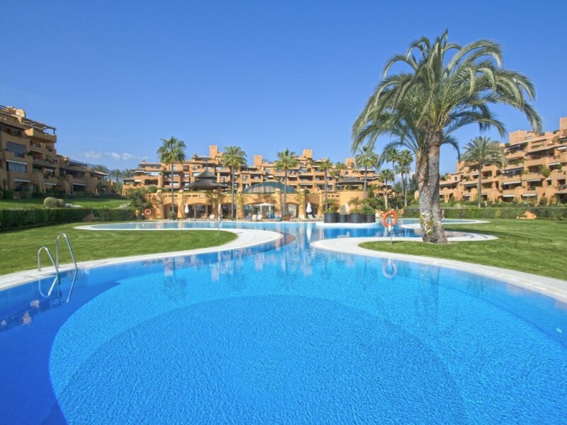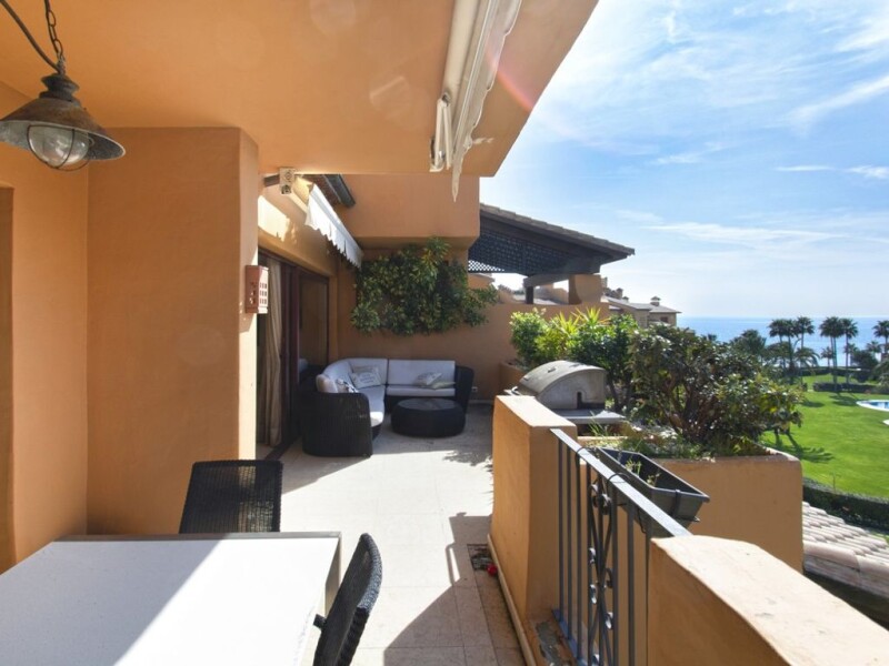 Front line beach apartment with sea views, in one of the most exclusive urbanisations on the New Golden Mile, Estepona, at 10 minutes drive from Puerto Banus. Large and fully equipped kitchen with laundry room, super bright and a huge living room fully furnished with dining area and access to the West facing private terrace, where you can enjoy the fantastic sea & mountains views. The property has underfloor heating, air conditioning hot & cold and home automation. Underground parking space and storage room are included in the price. This luxury development is located right on the beach, just a few minutes from the center of Estepona. There are three pools and an indoor heated pool, Gym and heated pool all surrounded by immaculately kept gardens. The community opens right to the beach from where you can access the boardwalk and easily walk to the center of the town. It is close to all local amenities including golf courses, international schools, shops, and restaurants. The urbanisation is gated with 24h guard security. The airports of Málaga and Gibraltar are located within a 30-45 minute drive.