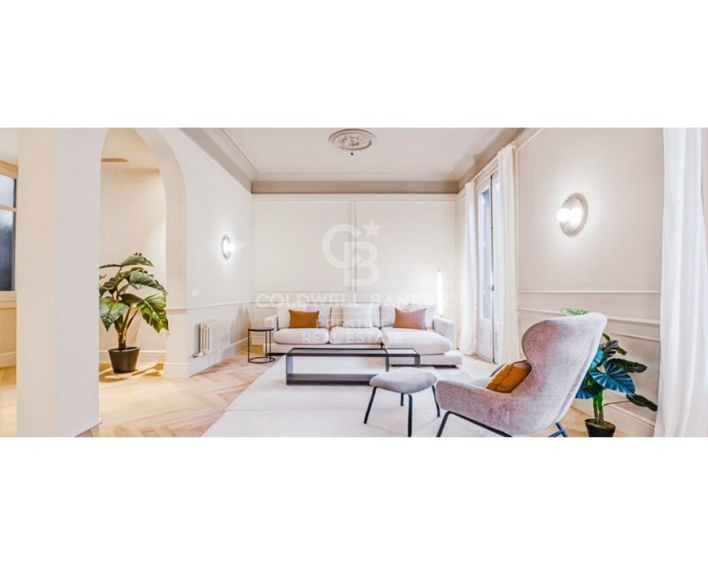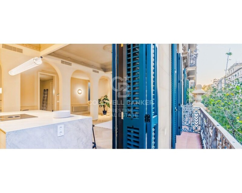 Layout and features: This stunning residence is located in a meticulously maintained regal building on Mallorca Street, between Rambla de Catalunya and Balmes. With a built area of 176 m² (169 m² usable), it seamlessly combines classical architecture with modern, functional interior design. Upon entry, a spacious hall divides the property into two main areas. The day area features a bright living and dining room connected by an arched wall that adds character and sophistication. The three balconies overlooking Mallorca Street ensure abundant natural light. The open kitchen, equipped with top-tier appliances, boasts a large central island with a cooking zone and seating, perfect for daily use and entertaining. The day area spans over 65 m². The night area comprises three expansive suites, each with its own private bathroom. The bedrooms are designed to create a warm and elegant atmosphere, with restored original ceilings that lend unique charm. The bathrooms showcase a contemporary, minimalist layout with a focus on functionality and elegance. The property features premium finishes, such as chevron oak parquet flooring, and efficient heating and air conditioning systems. Additionally, it includes a laundry area and a guest toilet. The classic-style building is in excellent condition, offering concierge services and two elevators for added convenience. Located in the heart of Eixample, this property provides direct access to Barcelona's main arteries, luxury shops, fine dining, and all the amenities of this iconic district. A unique opportunity to live in luxury in central Barcelona.
