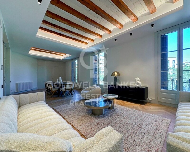 Discover this exclusive property located on the prestigious Passeig de Sant Joan, in the Eixample Dreta of Barcelona. This magnificent 199 m² apartment has been completely renovated with exquisite taste and elegance. Upon entering, you will be greeted by a spacious, bright living-dining room with access to a balcony overlooking the Passeig de Sant Joan. The independent kitchen, spacious and equipped with high-end appliances, is an ideal space for cooking enthusiasts. The residence features 3 double bedrooms, two of which are en-suite, with designer bathrooms and plenty of natural light. Additionally, you will find another full bathroom and a guest toilet. The original design elements, such as the ceiling moldings and woodwork, add a touch of distinction to this property. Located in a stately 1900 building undergoing a full renovation, you can enjoy a rooftop pool with sea views, a private gym, and a communal terrace. This property combines classic elegance with modern amenities, offering a unique lifestyle in one of Barcelona's most exclusive areas. Don't miss the opportunity to live in this impressive modernist building with privileged views and an unbeatable location!.