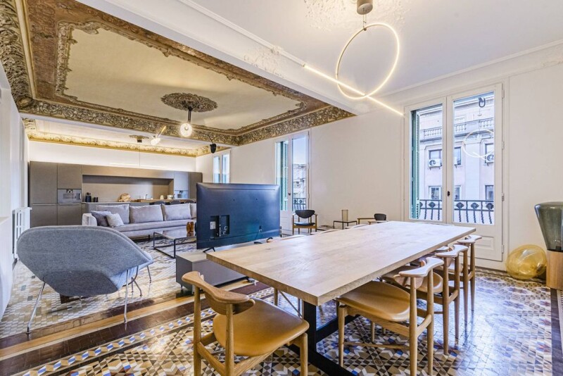 Casa Burés, one of the most emblematic architectural jewels of Catalan modernism, is much more than a house: it is a symbol of history, art and exclusivity. Built in 1905 by the prestigious architect Francesc Berenguer i Mestres, a disciple of Gaudí, this unique property is located in the renowned Eixample district, just a few steps from Paseo de Gracia. The duplex for sale is one of the most exclusive of the property, being one of the few that has 4 complete bedrooms. In addition, it stands out for having one of the richest and most detailed ceiling frescoes of the entire Casa Burés, a true work of art that elevates every corner to a level of incomparable luxury. The upper floor includes a master bedroom that opens onto a private 20 m² interior courtyard, a unique space that brings light and tranquility to the heart of the home. This duplex perfectly combines restored modernist details with contemporary comforts: designer kitchens, air conditioning and home automation technology, for an elegant and functional lifestyle. In addition, Casa Burés residents enjoy exclusive amenities such as indoor and outdoor swimming pools, gym and spa, coworking areas, social lounges and private gardens, which complete this unique living experience. If you are looking for a home that combines history, art and sophistication with modern comfort, this duplex at Casa Burés is for you. Contact us today for more details or to schedule a private viewing.