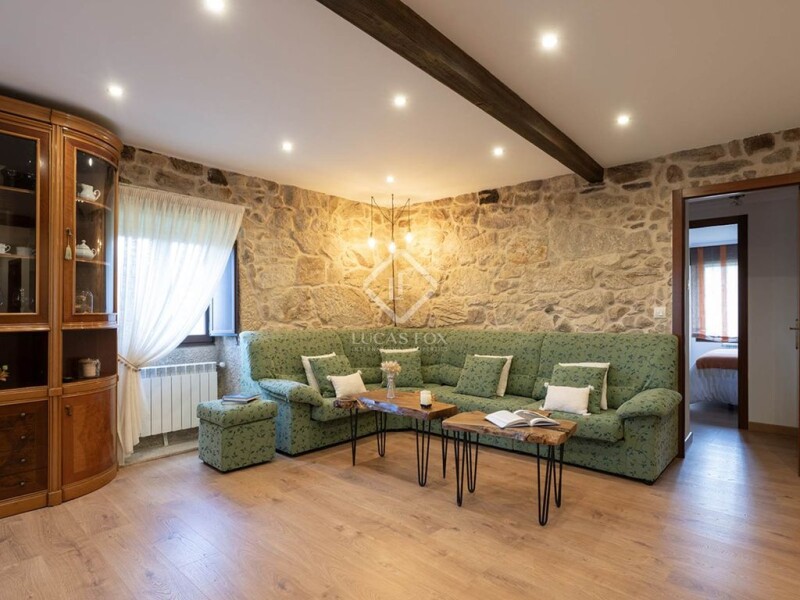 Lucas Fox offers for sale this property with more than 400 m² of built surface spread over a large plot with several terraced areas offering stunning views of the Galician countryside. The property has a well-defined perimeter and is easily accessible from the road, and vehicles can be conveniently parked next to the house or in a large parking area with a covered garage. The house is a typical stone construction which gives it a solid and rustic appearance, but inside it has been recently modernised offering all the necessary comfort. We enter the house to find a spacious living room with windows that let in plenty of light. A hallway connects to a dining room and kitchen area, where a wood burning cooker feeds hot water to the central heating system. The house has four large bedrooms with windows that allow views of the beautiful landscape or the internal courtyards of the property. In addition, there are two bathrooms finished to the highest standards. On the lower level of the house there is a wine cellar with a tasting area and another section with plenty of storage space. The property has several additional structures, including a covered garage for several vehicles and a winter kitchen with barbecue area. The land of this estate measures over 6,000 m² and has its own water spring with clean, drinkable and abundant water. Despite its size, the land is mostly flat, has several terraces, is covered with lawn and is easy to maintain. The views over the countryside from the various parts of the property are spectacular. This property is ideal for a family with children looking for a peaceful country life. Please do not hesitate to contact us for more information.