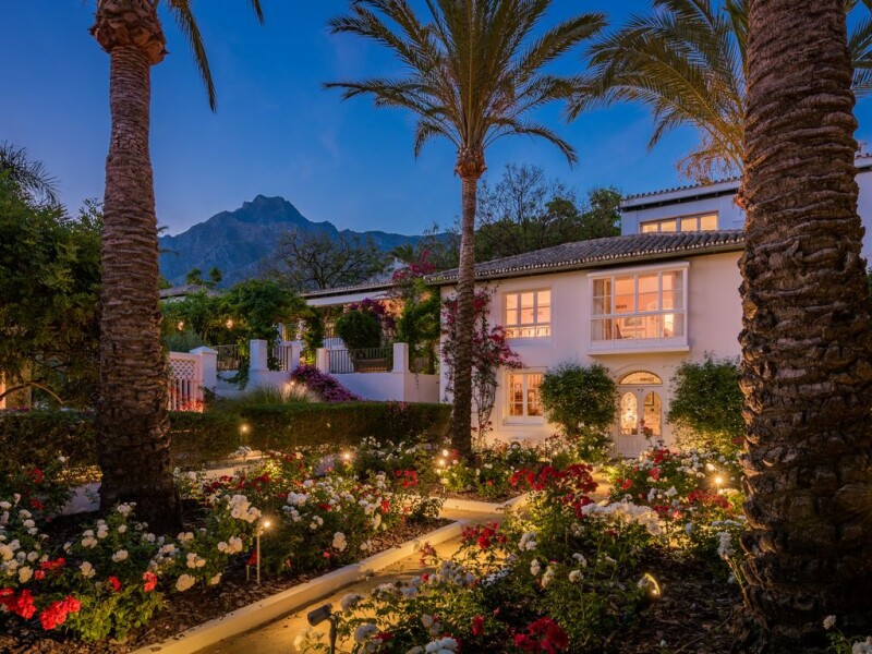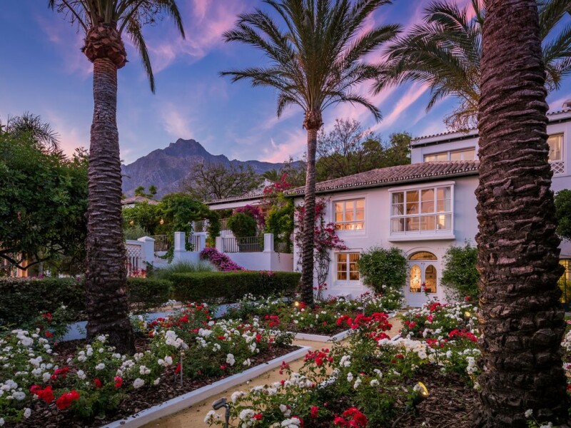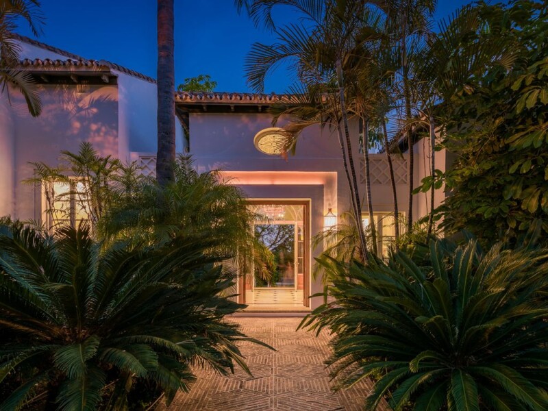 A beautifully designed villa with sea views on a large plot in one of the most desired areas on the Golden Mile, on the street featured as one of the most expensive ones in Spain. Exquisitely designed, offering privacy and elegance throughout, this property enjoys a stunning mature garden with several palm and fruit trees. South facing, the property is entered through beautiful antique doors with an entrance hall with views over a central patio with a water feature and opens on to a living room with cathedral style vaulted ceiling, fireplace and wooden floors. The lounge opens on to the dining room and a tv room with fireplace and a rustic style Gaggenau kitchen which connects to a double garage and carport for 1 car and en-suite staff bedroom. Stairs lead to a lower level where there is a temperature controlled wine cellar, machinery room, games room, storage and laundry area and a further double garage. Just to the left of the entrance hall, there is also an en-suite bedroom which is currently used as a study and guest toilet. Once inside the main entrance hall, steps lead down to an en-suite bedroom with a mix of mosaic and wooden floors and dressing room. Further down a few more steps, there is a further bedroom on 2 levels with a wooden staircase with iron baluster, lounge with fireplace and dressing room with mosaic floors. The enormous master en-suite bedroom occupies the entire upper level and has wooden floors, stunning sea views, a study and “his and hers” walk-in wardrobes. Heated pool with Turkish bath, and a winter garden which has access to the garden and gym. Further duplex en-suite bedroom with independent entrance from the garden in the western part of the villa. Andalusian style garden with different dining areas, terraced garden and a lovely pool with old olive trees features barbecue area and chill out area. Special features include: underfloor heating via diesel and water, B and O sound system, perimetral alarm, computer lighting system for house and garden. Situated within a community that offers 24 hour security and is gated at night time. A very special property, with a unique design and materials in one of the most consolidated areas.