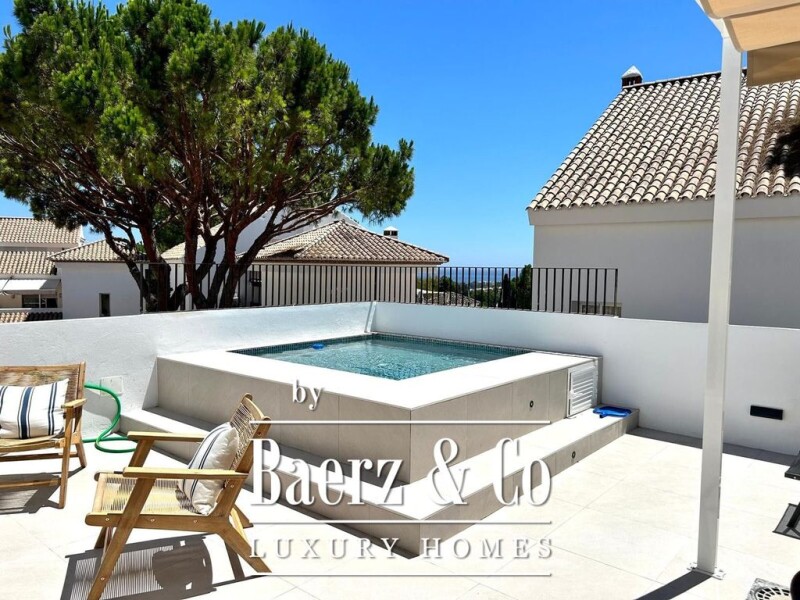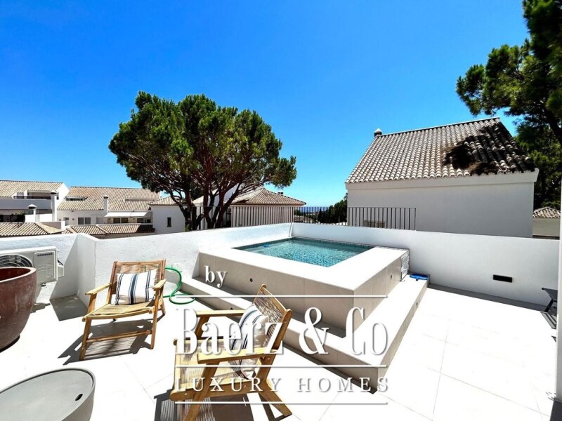 Brand new to the the market and completely renovated to the very highest standard. Located in a gated community within the bustling neighbourhood of Aloha. This south facing duplex penthouse has 4 bedroom and 3 bathrooms. This stunning property features 160m2 interior space with an extensive terrace of 60m2. And it's own small private pool! On top it features beautiful sea and garden views. The property has a large open plan dining/living area on the first floor, complete with 2 bedrooms and 1 bathroom. On the top floor the property features 2 master bedrooms complete with ensuite bathrooms, large wardrobes and breath taking views from the bedroom windows. It boasts lots of natural light, fitted wardrobes in every bedroom and has stylish ceiling spotlights fitted throughout. The kitchen comes fully fitted with a rich walnut colour and handle less cabinetry. Located in one of the most sought after areas, right on Aloha Golf Club's doorstep, 1 minute walk to Aloha collega and 5 minutes drive to Puerto Banus. The apartment comes fully furnished with a blend of modern/elegant style furniture. This property will make a fantastic family home, get in touch today to avoid disappointment.