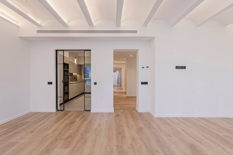 This elegant 152.29 m² apartment stands out for its sophisticated and well-thought-out design, located between Les Corts and Sant Gervasi - Galvany, just steps from Francesc Macià. The smart layout separates the living-dining room and kitchen from the sleeping areas, offering both privacy and spaciousness. The 31.72 m² living-dining room, flooded with natural light from large windows, features a Catalan vaulted ceiling, adding a classic touch. The fully equipped kitchen with SANTOS furniture and high-quality porcelain finishes ensures a blend of elegance and practicality. The night area includes a 15.52 m² master suite with a walk-in closet and private bathroom, plus two bright double bedrooms sharing a modern full bathroom. The 6 m² office offers a calm, functional space for working from home. Designed for comfort, the apartment has an individual climate system that allows temperature control in each room, ensuring year-round comfort. Every detail has been carefully chosen to reflect modernity and elegance, making this property a true gem in the heart of Barcelona.
