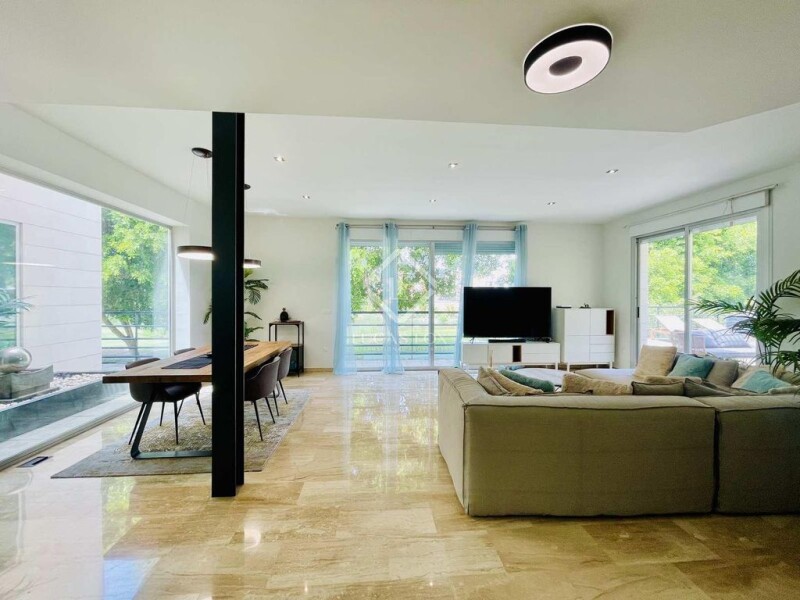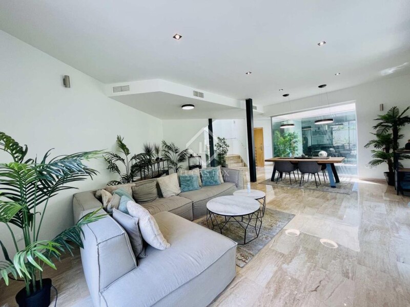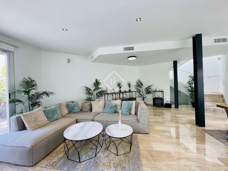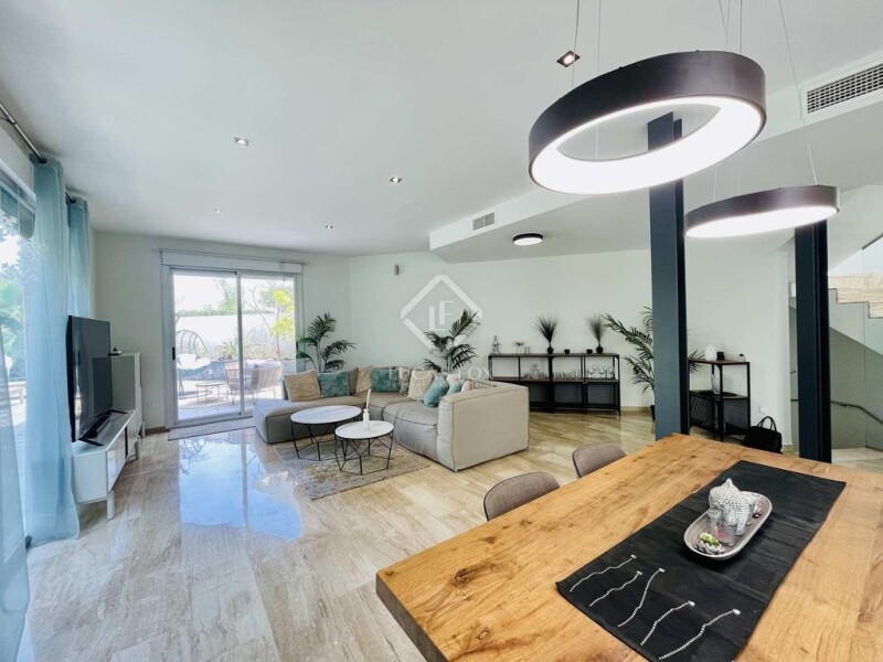 If you're looking for a comfortable and stylish home in a secure and pleasant environment, this property is perfect for you. Spread over three floors, the ground floor features a spacious living room with direct access to the terrace and pool, providing an excellent space to unwind. On the opposite side are two double bedrooms with en-suite bathrooms, a gym, and access to a garage that can accommodate two large vehicles as well as provide additional storage space. The main floor consists of a glazed kitchen with dining area, a toilet, and a utility room. There's also a roomy living room with large windows that offer stunning views of the golf course, and direct access to the terrace with a chill-out area and barbecue. On the first floor, you'll find the master bedroom with a dressing room and en-suite bathroom, two additional double bedrooms with spacious fitted wardrobes, and a full bathroom. All rooms boast magnificent views. Furthermore, the property is equipped with a security system, alarms, reinforced doors and windows, and automatic shutters with anti-lever system. Airzone duct air conditioning and solar panels for hot water are also installed for your comfort and peace of mind. The green spaces benefit from a sprinkler irrigation system, and the exterior floors are treated with marble for maximum durability. The facade is made of natural stone, and the materials used throughout the property are of excellent quality, making it a desirable home. This property is perfect for discerning clients who demand the best. Contact us to arrange a viewing.