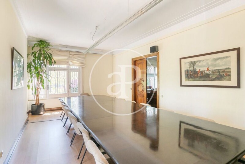 Beautiful house of 720m² built, distributed over three floors plus a basement, located on a 1.713m² plot with a perimeter garden facing southeast. This property, ideal both as a corporate headquarters for a company or as a family residence, offers ample possibilities for personalized reform. When accessing the property, currently used as offices, we do so through the pedestrian entrance or the vehicle access, which guarantees privacy and an unparalleled feeling of freedom and tranquility, accentuated by the lush garden and leafy trees that surround the house. From the garden, a staircase leads us to the interior of the house, which also has a pediment for recreational activities. On the ground floor, a wide central staircase connects all the floors, while the open and bright spaces offer multiple options to create cozy and functional environments. The main living room stands out, with its imposing fireplace, library with wood paneling and a large window that offers views of the porch and the garden. The first floor houses various exterior rooms that can be adapted as single, double or large suites, thanks to the presence of two full bathrooms. In the centre, there is a large multi-purpose room with access to a terrace on the main façade. On the second floor, we find a toilet, several exterior rooms suitable for bedrooms or other uses, and a pleasant terrace with panoramic views of the garden and the city of Barcelona. The property has an outdoor parking area with capacity for six cars and an indoor garage under the garden, with space for two additional vehicles. This garage, accessible from the street, connects to the house through a passageway that also gives access to the storage room, the cellar and the water area. The house, spacious and bright, has quality finishes, such as laminated parquet, terrazzo and ceramic floors in bathrooms and kitchen. It has heating through radiators, air conditioning through ducts on the ground and first floors, and a heat pump system with splits on the second floor. Built in 1936, this property is located in Pedralbes, at the top of Barcelona, known for being the most exclusive and elegant. Can you imagine living here? Contact us and let's talk!.