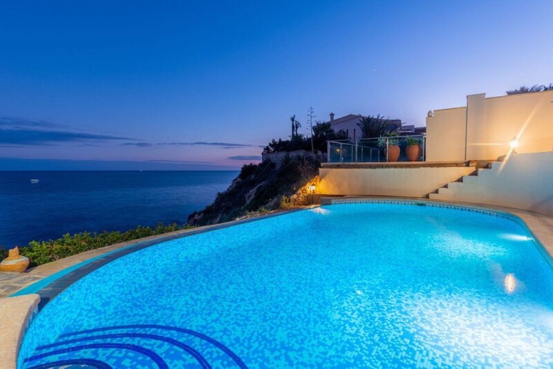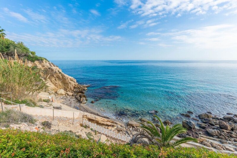 Exceptional Sea Front Villa on the Northern Costa Blanca with Private Staircase to Beach Nestled on the front line of the Northern Costa Blanca, in the highly sought-after residential area of Coveta Fuma, this exceptional villa spans over 220 square meters and sits on a particularly private plot more than five times its size. Positioned between two idyllic coves and on top of a third, it is just a short drive from the charming fishing village of Villajoyosa to the north and the picturesque coastal town of El Campello to the south. This privileged location offers breathtaking sea and mountain views, along with a private staircase leading directly to a secluded beach cove. The tranquil cove is ideal for sunbathing or swimming, away from the crowds. Additionally, Villa Bahia Verdosa is conveniently located near Coveta Fuma's local shopping center. its proximity to Alicante—just 25 minutes away—ensures easy access to the international airport, two golf courses, and a marina. Access and Privacy The villa is accessed via an automated sliding gate leading to a private driveway from a quiet residential cul-de-sac in Coveta Fuma. Design and Layout Set on a corner plot, this single-story villa (with a garage located on a lower level) seamlessly integrates with the lush Mediterranean landscape. The property was fully renovated in 2019 to the highest standards, with a subsequent upgrade in 2023. During this renovation, the structural framework of the house was retained, but everything else was completely rebuilt. improvements included: - Wall and roof insulation. - Replacement of all windows, doors, the front gate, and the garage door. - New flooring and roof. - A complete overhaul of the electrical system, plumbing, garden, and terraces. - Entirely reconstructed bathrooms, kitchen, and outdoor kitchen. - interior design and furnishing with high-quality materials, ensuring both comfort and style. interior Highlights Ground Floor A spacious, open-plan living area of approximately 76 m2 features two lounge/seating areas and a dining zone. Expansive windows flood the space with natural light, showcasing stunning views of the terrace and the Mediterranean sea. Adjacent to the living area is an arched, covered naya-terrace (15 m2) to the west, ideal for enjoying the evening or winter sun. Kitchen A fully equipped, state-of-the-art kitchen is adjacent to the lounge, featuring high-end appliances—perfect for culinary enthusiasts. Bedrooms - Three double bedrooms with built-in wardrobes. - The master bedroom boasts captivating sea views and an en-suite bathroom with dual sinks. Lower Level - An underground garage with space for one car, motorbike, jetski and additional storage. - Private parking for multiple vehicles within the property. Exterior Features** - Covered outdoor BBQ area (11 m2). - Mature, landscaped gardens with numerous palm trees and terraced areas for dining, relaxation, and sunbathing. - A stunning 126 m2 pool terrace with a 38 m2 infinity pool offering spectacular views. - Private access to a secluded beach cove. Additional Amenities - Alarm system for enhanced security. - Hot and cold air conditioning throughout the property. - Luxury furniture, fixtures, fittings, and appliances included in the price. South-Facing Outlook The villa enjoys a desirable south-facing orientation, ensuring abundant natural light throughout the day. deal for Mediterranean Living This villa is the perfect choice for a family seeking to embrace the best of Mediterranean living, combining luxury, privacy, and a breathtaking coastal setting. it is also well-suited for individuals with reduced mobility and elderly residents.