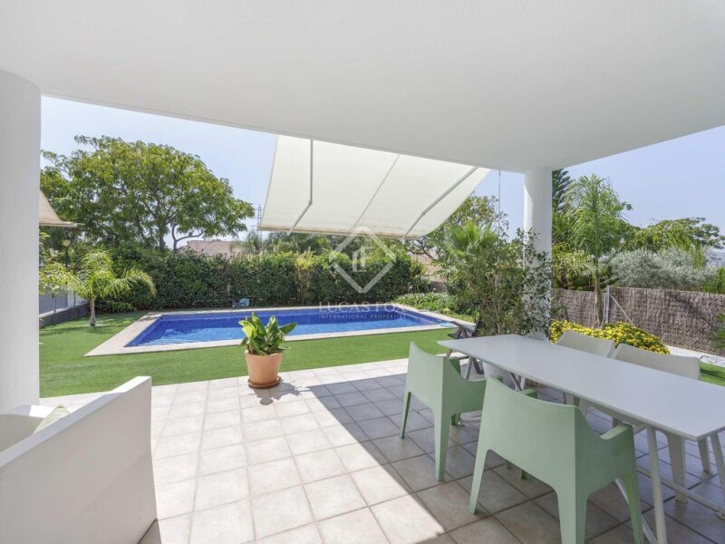 Lucas Fox presents for sale this house with a single floor layout , in an development with 24-hour security service in Bétera, Valencia. The villa sits on a plot of approximately 830 m² and offers spacious areas and a comfortable layout. As soon as you enter, you will find the bright living-dining room with a double-height sloping ceiling and access to the two terraces of the house. The kitchen is also large, with space to accommodate a table and chairs. Just before entering the bedroom area, you will find the guest toilet and some closets. The night area, separated from the rest of the house for greater privacy, consists of four bedrooms and two full bathroom . The house has air conditioning and radiator heating. All rooms are exterior and have windows. In the exterior area, the garden is decorated with artificial grass and other natural plants. The swimming pool is large and faces south. There is space to park two cars and there is a large closed storage room . Please contact for more information.