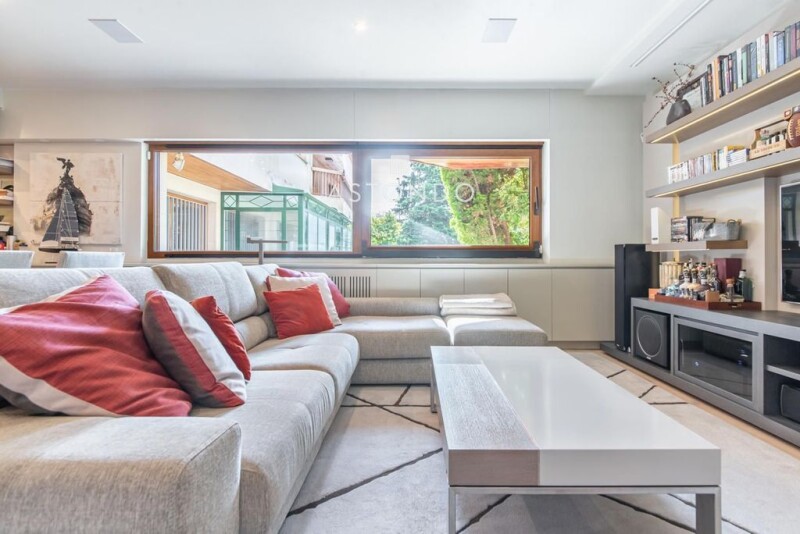 Beautiful two-bedroom ground floor with magnificent interior renovation, private garden, direct access to the urbanization pool, garage and storage room in located in a quiet and beautiful private urbanization in Nueva España. The apartment has excellent qualities and is worth highlighting the luminosity of all its rooms as well as its good distribution of spaces, making it a comfortable home for any family. It has a large number of amenities: home automation, piped music in the living room, bedrooms, bathrooms and terrace and direct access to the urbanization pool. The heating is central natural gas with an individual meter. We access the house through a hall open to the living room. The spacious living room has large windows with beautiful views of the garden and the community pool, it has a projector and screen, custom-made furniture and LED lights, we find an office area and large storage space under the windows. The kitchen is open to the living room with the possibility of being closed by a sliding door. It is worth highlighting its large storage capacity with floor-to-ceiling cabinets, its high-end paneled appliances and the office that has direct access to the terrace-garden wing. of the house. It has two large bedrooms, the master bedroom with unbeatable views of the pool, dressing room and en-suite bathroom with shower, bathtub and direct access to the garden terrace. We find a second full bathroom to serve the second bedroom and be used as a guest toilet. The house is surrounded by a beautiful garden terrace that has great privacy, consolidated vegetation, shower, piped music and direct access to the pool of the urbanization.The apartment has a garage and storage room and the property has a concierge during business hours from Monday to Saturday.Its privileged location in the heart of the Chamartin neighborhood, on a quiet street in Nueva España, makes the apartment count with all services, schools and nurseries, restaurants, supermarkets, green areas and good access to the M-30. Call us and visit!.
