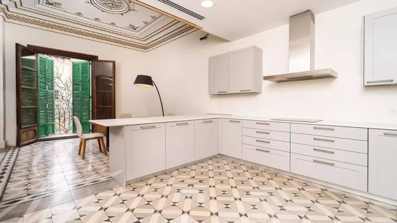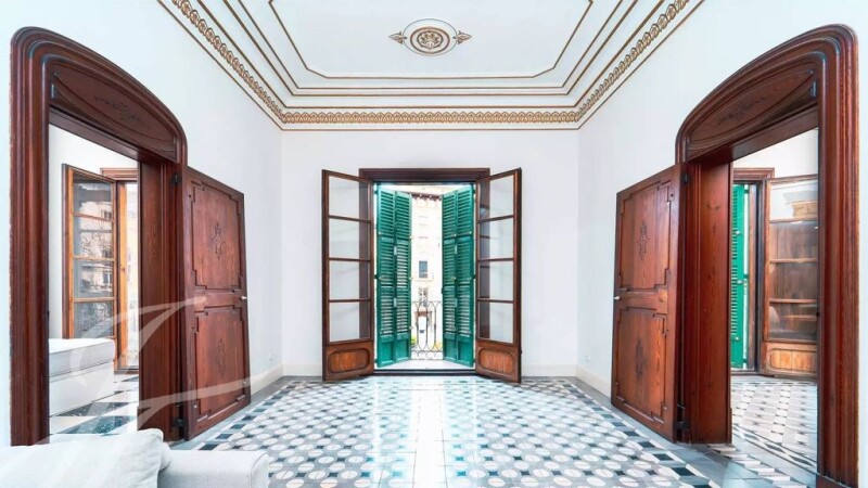 This large first floor apartment is located in the emblematic area El Born, overlooking the tree lined promanade and within walking distance to everything one requires for a very comfortable daily lifestyle. Upon entry the very high ceilings in the social areas of the property with impeccable artisan work including rosettes, mouldings, and cornices together with the orginal floor to ceiling windows and original hydrolic tiling assures the guarentee of having that Old Town character and charm. The property offers 4 bedrooms, 3 bathrooms (2 en suite) a fully fitted kitchen/dining area, large living room and seperate studio/office ideal for those working from home. Truly a gem in one of the best locations in the city. One of the best preserved old towns in Spain featuring the most amazing Gothic architecture in the Mediterranean surrounded by hundreds of narrow streets, excellent shopping, great restaurants, art galleries, museums and amazings ancient passage leading to important historic monuments, landmark buildings and the jewel of the crown: Catedral Santa Maria, La Seu. It is very popular for the night life and offers very trendy places to visit, like Passeig del Born, Avenida de Jaume III, Passeig de la Rambla, La Llonja and some of the most visited “Plazas”, such as Plaza Santa Eulalia, Plaza Cort, Plaza Mercat and Plaza Mayor among others. Casco Antiguo is one of the most desirable districts for property investment. Many of them have been renovated over the past few years and have been turned into luxury apartments, fitted with all the modern amenities.