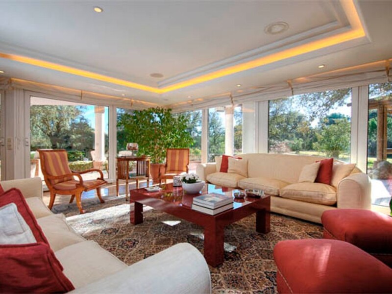 Villa situated in the urbanization La Moraleja, a luxury residential housing development located north of Madrid, 10 km from the city center and 10 minutes from the Adolfo Suarez Airport. Family house very well built on splendid plot totally south facing with numerous centenary holm oaks, pond, cistern, swimming pool and tennis, gazebo with barbecue, additional house in the garden of about 15 m2 prepared with water and electricity installations. The house is basically distributed on three floors. On the main floor, a hall leads to a living room divided into two rooms totally south facing over the plot, a dining room with views over the plot, and a multipurpose room of 100 m2 with a fully equipped cinema, bar, and connection with the gym with showers which also projects over the garden through its large windows. Toilet, kitchen with dining area, laundry and ironing area, and service bedroom with bathroom. On this floor, there is also a guest bedroom with a bathroom. On the upper floor, there are a total of three bedrooms all en suite with a bathroom and a terrace. The master bedroom with fireplace, dressing room, and bathroom with beautiful views over the plot, shower, hydromassage, and sauna, this bedroom has armored doors for security. There is also an office on this floor, easily convertible into a bedroom. In the basement, an open plan living room of 80 m2, a cellar, and a toilet. An attic of about 25 m2 is used as an installation room which can be easily fitted out and enlarged. The house is from 1988, it is very well maintained. We highlight its exterior carpentry krommerling with triple glazing, metallic structure, strong thermal and acoustic insulation, perimetral sanitary vacuum system, centralized aspiration, alarm in doors and windows, interior and exterior audio system in all the house. The façade is of exposed brick, terracotta floors, and oak doors. Strong security measures.