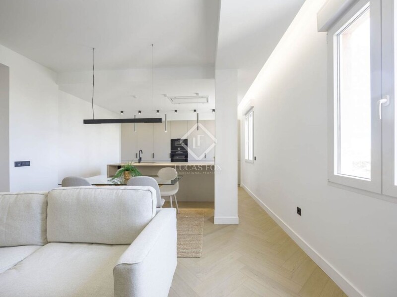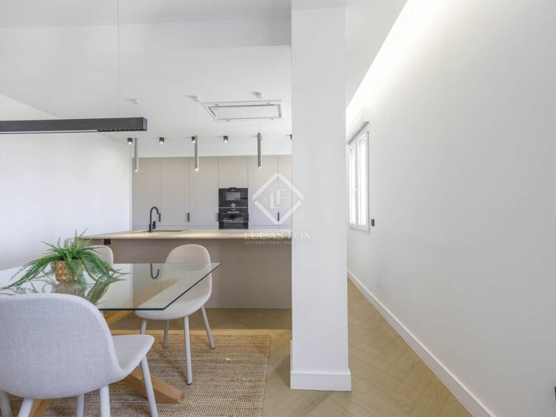 Lucas Fox presents this exclusive apartment for sale in the Ruzafa neighbourhood of Valencia. In this case, it is located in the West zone and with views of the Central Park where works have already been carried out in the park. In the future, with the burying of the tracks, the city will be transformed and a large green area will be created. In one of the photos, you can see the views from the property. The property has been completely renovated . It has been transformed into an impeccable apartment with a better layout of spaces and with exceptional qualities and finishes that give it class and personality. We enter the property through the day area, where the living room is located in a large and generous space of over 30 m², with a kitchen diner with an island, which also has a hob integrated into the worktop. The night area has three bedrooms, two bathrooms and a separate technical area. Five large windows offer views of the park and provide abundant natural light to the property. Please contact us for more information.
