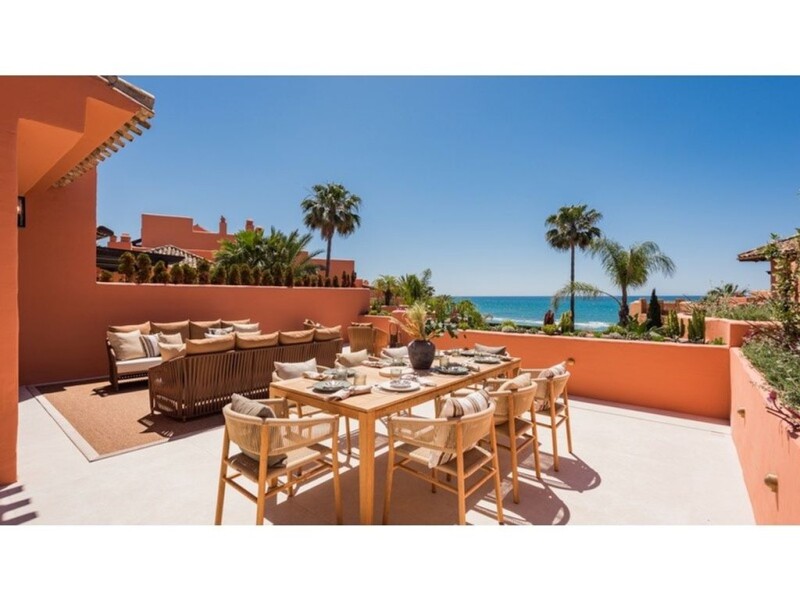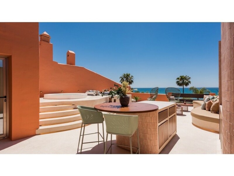 DUPLEX PENTHOUSE URB. LA MORERA, RESERVA DE LOS MONTEROS This stunning penthouse has 4 bedrooms and 5 bathrooms and features a high-quality interior design and elegant furniture. On more than 250 m2 this amazing penthouse boasts a spacious open- plan distribution and spectacular sea and garden views. It is equipped with elegant floors, a Siematic designer kitchen with Gaggenau appliances, an electric fireplace, tailormade wardrobes, a Bang & Olufsen sound system, exclusive Kettal outdoor furniture and underfloor heating. It comes with two underground parking spaces and one storage room. “La Morera” is an impressive frontline beach urbanization which is located next to Marbella ́s famous “Los Monteros” beach and just a few steps from the well-known beach restaurant Trocadero Arena. It offers 24 hours security, a pool, an indoor pool, a gym and a wonderful tropical 10.000 m2 garden.