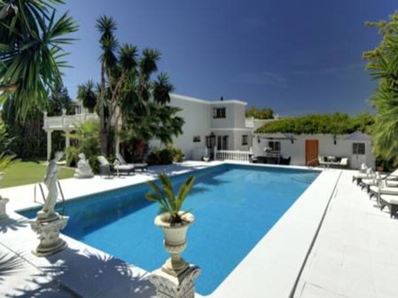 Magnificent frontline golf villa! This stunning 4 bedrooms home combines the glamour of a Riviera house with the natural beauty of lush, wild tropical garden. Situated frontline golf of Guadalmina with direct access to one of the best golf courses in Marbella. It is 5 minutes drive to the beach and Puerto Banus. The property comprises of 2 master suites that boast an impressive detailed style of imperialism. The remaining 2 en-suite guest’s bedrooms are located on the first floor with convenient access to the lounge and garden areas. Three of the four en-suite bedrooms open up to the magnificent spacious terraces, ideal for breakfast, dining or romantic dinners. The 2000m2 plot includes an expansive swimming pool adorned with “Versaille” statues, reminiscent of French castles. This exclusive villa prides itself on having the magical combination of wild tropical gardens and “Le jardin a la Francaise”. To the side of the main house lies an annex of 150m2 perfect for staff. It has one bedroom, chill out room with large bathroom and a very spacious gymnasium which could easily be converted into a large apartment. Solar panel technology offers an endless supply of hot water, heating and air conditioning at no extra cost. The mature gardens are also maintained through an on-site underground water supply.