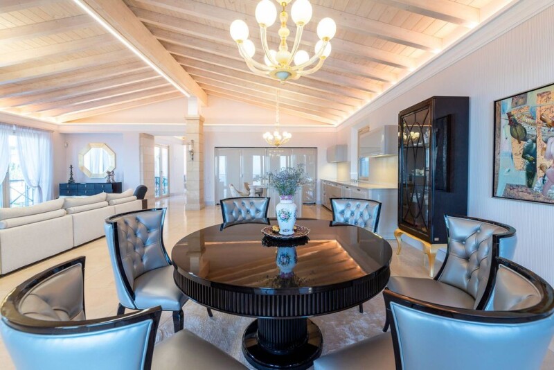 Perched in an exclusive elevated position in the prestigious George Sand residential area, this remarkable villa in Valldemossa offers unparalleled sea views and refined luxury. Just five minutes from the charming village, this frontline property is an architectural masterpiece, designed with the highest quality materials and elegant finishes to create a Mediterranean sanctuary. Set on a generous 2,900 m² plot, this villa spans 760 m² across two levels, seamlessly blending indoor and outdoor spaces. The grand entrance hall opens to breathtaking sea views, leading into a spacious living room with a fireplace, a fully equipped Gaggenau kitchen, and a dining area that extends onto a panoramic terrace. The main floor also includes a stylish en-suite bedroom, a laundry room, and a guest toilet. Descending a majestic marble staircase, the lower level is home to an opulent master suite with a private dressing room, a Jacuzzi bath, and direct access to the pool and sun-drenched terrace. A separate study, an additional en-suite bedroom, a fully equipped gym with a sauna and cold tub, and a wine cellar complete this level. The property’s lush Mediterranean gardens, featuring fruit trees and automatic irrigation, enhance the sense of privacy and tranquility, while multiple terraces and a barbecue area provide the perfect setting for entertaining. Additional features include a spacious garage, extra outdoor parking, underfloor heating, triple glazing, and a state-of-the-art security system. With direct access to the sea and breathtaking views at every turn, this exceptional villa is a rare opportunity to experience the finest coastal living in one of Mallorca’s most desirable locations.