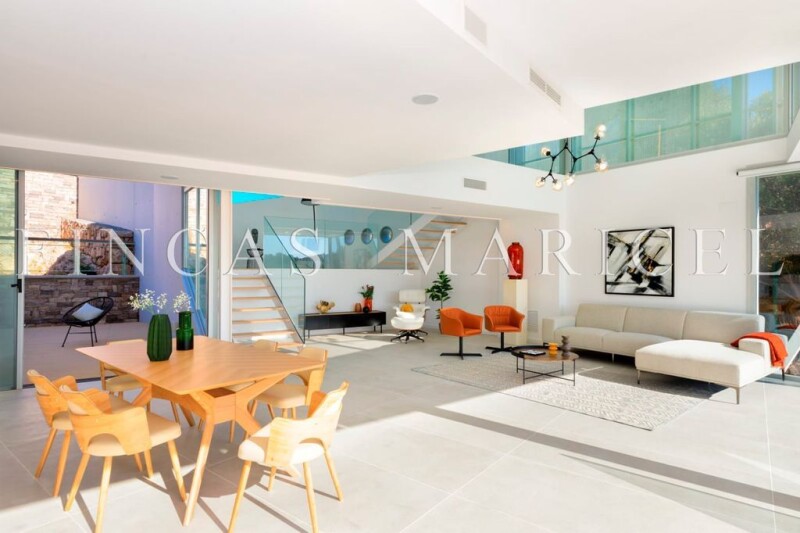 Fantastic designer villa located in the exclusive area of Can Girona in Sitges. This spectacular house consists of 3 floors and uneven areas, due to its large windows and glass walls, through which we can enjoy spectacular views over the sea, the golf course and the pool, the whole house has very high ceilings, the house It has an elevator and comfortable stairs. From the street level there is access to a parking lot with capacity for at least 3 cars. The entrance area can also accommodate 4 or 5 guest vehicles. On this floor there is also the laundry area with large closets and the machine room area corresponding to the pool, the heating (by aerothermal energy), the water purifier and the softener, it enjoys the installation of the latest advances in home automation and efficiency. energetic. The house is finished with the highest quality materials both on floors, as well as in bathrooms and kitchen. We access the first floor by elevator, where we find a spacious and bright double-height living-dining room whose rear wall reveals the pool (as if it were a painting), the fully equipped kitchen also with glass walls, both from the living room As from the kitchen we can access a terrace that has a white aluminum enclosure, obtaining greater privacy without subtracting natural light. Going up a few steps we find the first bedroom, with built-in wardrobes and a full bathroom, and also a courtesy toilet. On the second floor, there are the rest of the rooms, 3 of them are double and very spacious (one of them is a suite), all with fitted wardrobes and access to the terrace. The suite has a complete bathroom with a square pool-type bathtub, convertible into a shower through a wooden floor, and the other two share a complete bathroom with a shower. The property has a private pool surrounded by land with terraces at different heights that allows the creation of a zoned landscaping project to accommodate different activities. In the upper part of the plot, above the pool, there is an auxiliary building with changing rooms and bathrooms to service the pool. The exclusive and quiet urbanization of Can Girona, is located next to the Terramar golf course, close to prestigious international schools and a few minutes from the center of Sitges. ** Sitges is a white town, of old fishermen, on the shores of the Mediterranean. 30 kilometers from Barcelona airport, accessible by motorway, today it is a tourist center of international projection. Pioneer of tourism since the 1920s. Tolerant and hospitable. It has a marina and an 18-hole golf course. It enjoys an exceptional climate, mild in winter and warm in summer. Its 4 kilometers of golden beaches have a blue flag for the quality of its waters. Modernist mansions and luxury hotels grow on its Paseo Marítimo. Sitges offers an annual calendar of attractive events: cultural such as the Fantastic Film Festival and the Terramar Music Festival; recreational such as Carnival, the Vintage Car Rally or the Harvest Festival, traditional such as the Festa Major, gastronomic, sporting and social events. Sitges is the pearl of the Mediterranean.[IW].