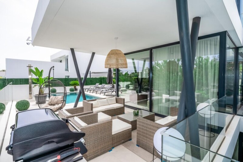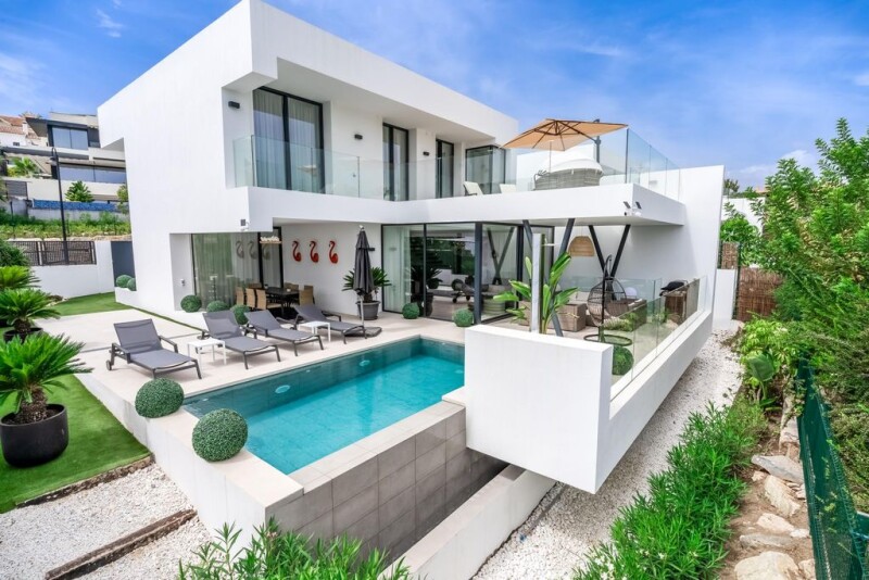 Marvellous villa for long-term rent and for sale in El Campanario, Estepona This luxurious villa is located in El Campanario, Estepona, Malaga, offering a truly exceptional living experience. With 5 bedrooms and 4 bathrooms, this spacious property spans across 460m² of built area, situated on a 600m² plot. The villa boasts a private garage and is classified as luxury, sole agency, and new built. As you step into this magnificent villa, you will be greeted by an array of top-notch features. The property is equipped with air conditioning throughout, ensuring a comfortable living environment. The villa is offered fully furnished, allowing you to move in hassle-free and start enjoying your new home immediately. The fully fitted kitchen is a chef's dream, providing all the necessary appliances and ample storage space. You can unwind in the living room, enjoying satellite TV or take in the stunning views of the sea and golf course from the private terrace. This villa also offers a range of additional amenities, such as a basement, storage room, and laundry room for your convenience. The property is secured with an alarm system and security shutters, providing peace of mind. The covered terrace and barbeque area are perfect for outdoor entertaining, while the heated pool allows for year-round enjoyment. Perfectly located, this villa offers easy access to amenities, transportation, and is close to the sea and golf courses. It is in excellent condition and offers panoramic views of the garden and pool. Additionally, the property is close to shops, schools, and town, ensuring a convenient lifestyle. With surveillance cameras in place, you can feel safe and secure in your new home. Do not miss the opportunity to own this exceptional luxury villa in El Campanario.