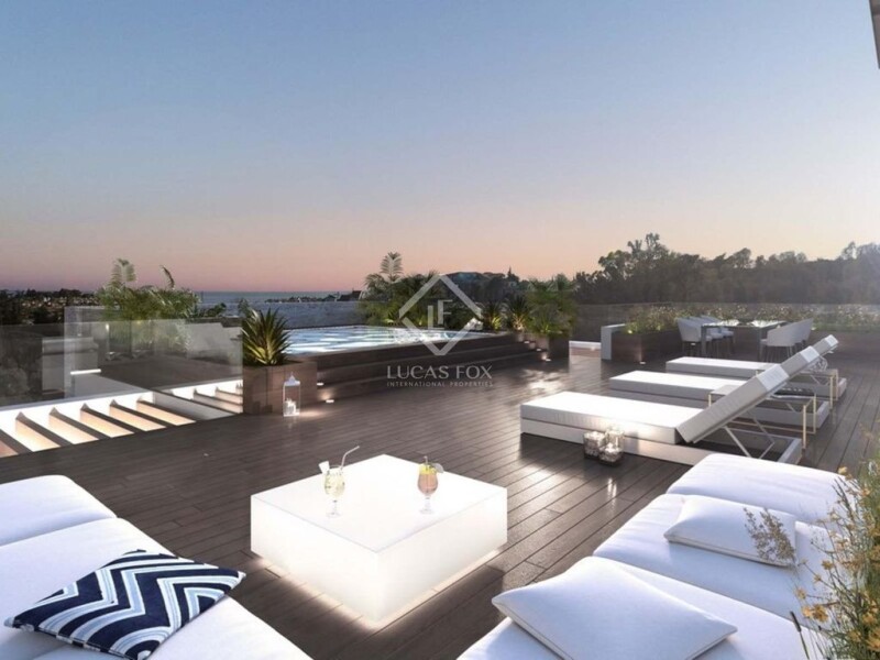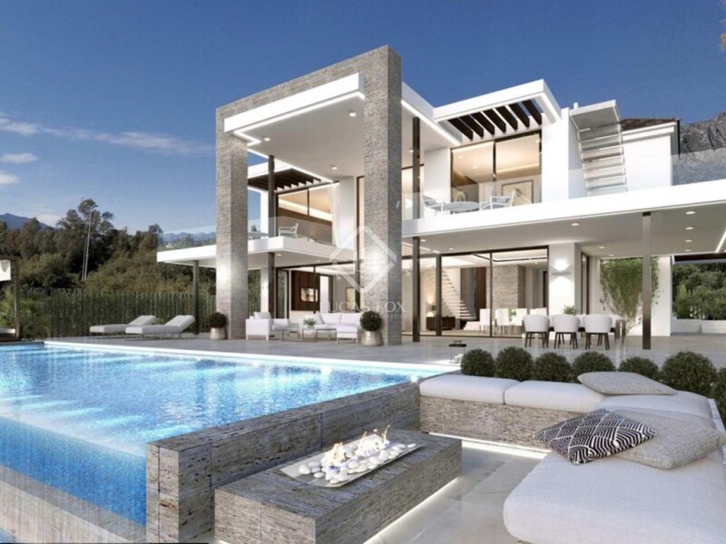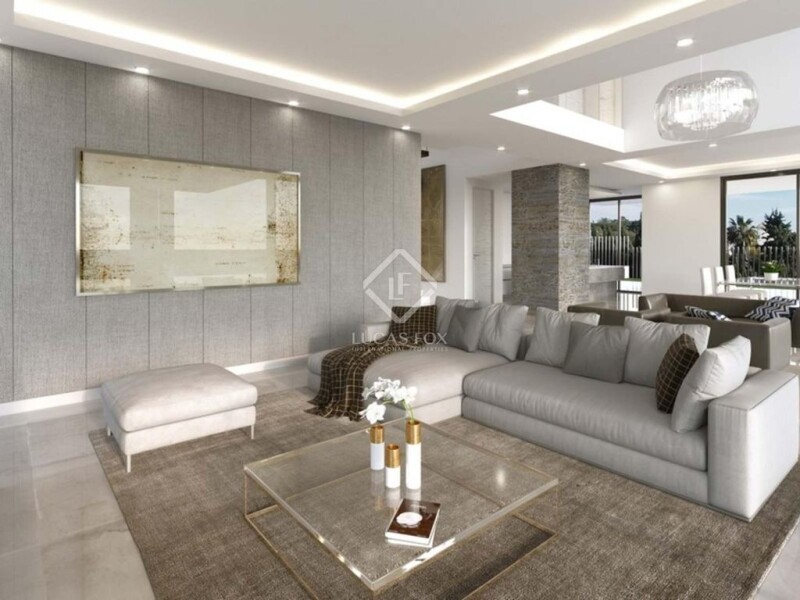 Currently under construction, this villa promises to be an exceptional home on Marbella's Golden Mile. The villa is set within a gated development of just 12 plots offering great privacy and with 24-hour security. The port, beach and a wide range of shops and amenities, as well as golf courses, can be found close by. The villa provides 311m² of accommodation distributed across 2 floors pus a basement and a roofop terrace. On the ground floor we find an elegant living-dining area with floor-to-ceiling glass doors opening onto a covered terrace- perfect for dining outdoors whilst enjoying the stunning sea views- which leads to the fantastic infinity pool. The open kitchen is modern and fully equipped. A double bedroom with en-suite bathroom completes the ground floor. Three further bedrooms, each with en-suite bathroom and dressing room, make up the first floor and have access to 96m² of terraces. In the basement we find a 4-car garage, gym, sauna, shower room, laundry room, machinery room and 1 bedroom with en-suite bathroom. There is also an additional exterior parking space on the ground floor. A stand out feature of this stunning home is the impressive rooftop terrace with a jacuzzi and chill-out area. The perfect space to enjoy the enviable Mediterranean climate and make the most of the exceptional sea views. With features such as a domotic system, indirect LED lighting, underfloor heating throughout and a private lift connecting each level, this property showcases the latest in home technology. Expected completion: August 2019.