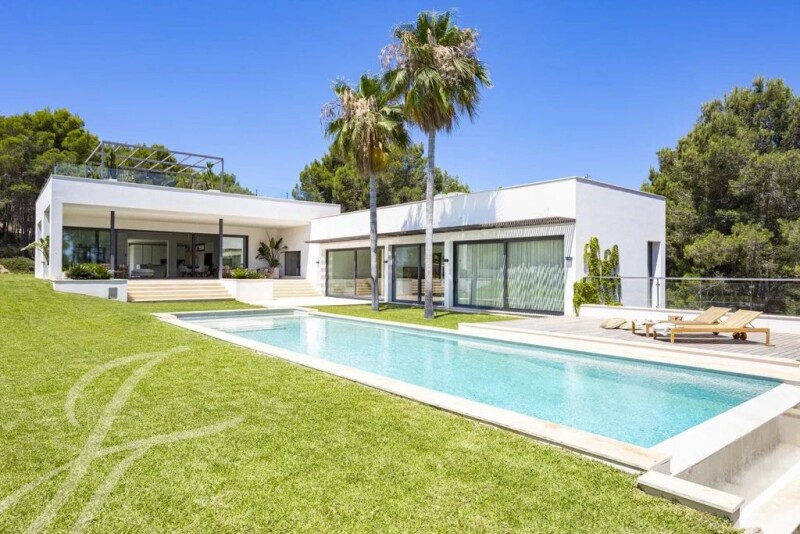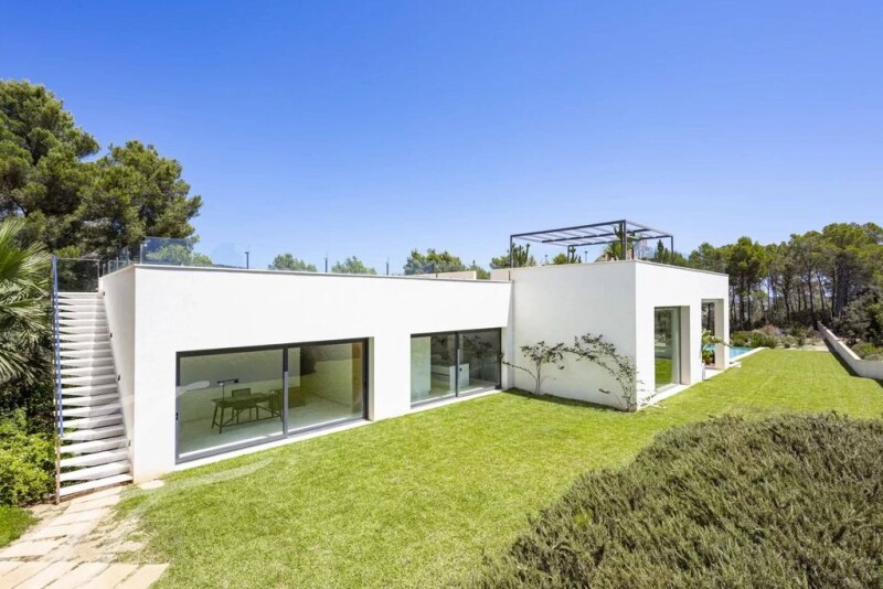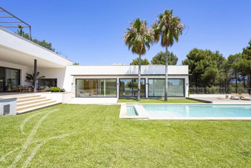 This recently totally reformed large modern villa in Son Vida, has a large flat Mediterranean garden with a large lawn area. The villa has an impressive large outdoor entrance area with an external staircase leading to the entrance hall of the villa. The loft-style living/dining area is very bright thanks to the floor-to-ceiling sliding glass windows. This area also includes an open-plan American show kitchen with breakfast island and a working kitchen at the rear, all with German kitchen appliances, as well as a separate office space with en-suite bathroom. All rooms on this floor are connected to the spacious garden area via outdoor terraces or lawns. In the bedroom wing of the villa there are 2 guest bedrooms with en-suite bathrooms, a master suite with bathroom and a private sun terrace, which leads to the square shaped outdoor saltwater pool. In the basement there is a large double garage, a large laundry room, two guest suites with bathrooms and fitted wardrobes. There is also a gym with sauna and bathtub and a separate room for a home cinema. The villa has a large roof terrace, with amazing sea views and cathedral views – This roof terrace also compromises a pergola has already been installed, and there are connections for an outdoor kitchen. Son Vida – the epitome of luxury lifestyle in Mallorca was first recorded in the 13th century. The castle which was mentioned is now a famous hotel. The site started as a farming area and was developed by the Vida family. Nowadays it is a gated community with several golf courses, two five-star hotels, and a vast array of stunning properties with amazing views over the surrounding mountains and the bay of Palma. It has attracted famous visitors and royals and has been the home of celebrities, and golf and architecture lovers alike. It has easy access to all amenities like cultural events, cinemas, shopping, sports, and medical centers and it is only a stone´s throw away from the capital Palma. Famous beaches and their clubs are within a short drive and the airport is just 15 minutes away which also makes it attractive to commuters. Son Vida is divided into the newer and the older parts. In the new Son Vida, you will find stunning villas with purist and modern architecture and the more classical Mediterranean-style ones around the golf courses in the older part. So there is something for every taste in the selection of exclusive property in this unique enclave.