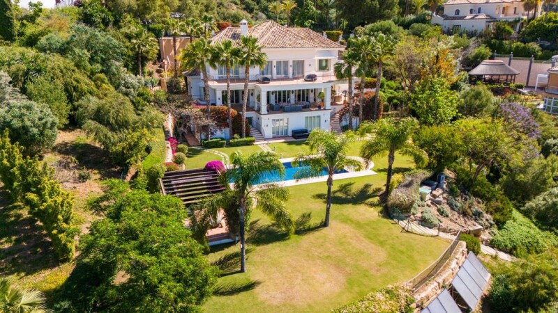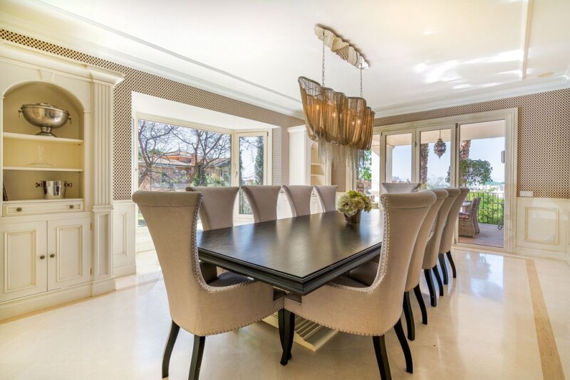 Stunning mansion for sale on the Golden Mile, Marbella Nestled in the esteemed Marbella Hill Club, this newly constructed mansion epitomizes opulent living with sweeping sea vistas from every angle. Meticulously crafted with premium materials, this villa promises a luxurious living experience that seamlessly blends sophistication and comfort. As you approach the residence, a picturesque driveway leads to the main entrance, where a striking rock waterfall feature and a tranquil fish-filled pond set a mesmerizing tone. Stepping into the grand entrance hall with its soaring triple-height ceiling exudes elegance, while a conveniently located guest toilet caters to visitors' needs. The refined living room, accentuated by a welcoming fireplace, offers an inviting space for relaxation and social gatherings. Adjacent to the living area, a charming covered terrace beckons for moments of tranquility amidst the breathtaking sea views. Hosting formal dinners is a delight in the elegant dining room, while the cozy TV room and a beautifully appointed wooden study cater to leisure and work needs. Designed for both practicality and style, the family kitchen with a central island is a culinary enthusiast's dream. Upstairs, the expansive and luminous master en-suite bedroom boasts a dressing area and a fireplace, creating a lavish private sanctuary. Two additional bedrooms on this level share a bathroom and a terrace that overlooks the lush garden and offers mesmerizing sea views. The lower level of the villa is dedicated to relaxation and entertainment, featuring a luxurious spa with a Jacuzzi, Turkish bath, and a hairdressing salon for ultimate pampering. Three en-suite bedrooms on this floor, each with garden access, provide ample space for family and guests. Additional amenities include a cinema room, wine cellar, and laundry facilities, catering to every need. A separate guest apartment with an en-suite bedroom above the double garage ensures privacy and comfort for visitors. The meticulously landscaped garden surrounding the property showcases a saltwater heated pool and Bermuda grass, while a charming gazebo offers a serene retreat to admire the stunning views. Equipped with cutting-edge features such as a perimeter alarm, solar panels, and a smart home system for lighting and more, this mansion prioritizes security and convenience. The gated complex offers added security measures at night, enhancing the sense of safety and exclusivity. Ideally situated in one of the most prestigious areas on the Golden Mile, this property presents a rare opportunity to indulge in luxurious living with unparalleled sea views. Whether you seek to host lavish gatherings or retreat in tranquility, this Marbella Hill Club mansion epitomizes elegance and refinement.