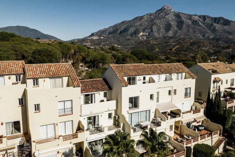 Charming townhouse for sale in Nueva Andalucia, Marbella This luxurious town house is located in the prestigious area of Los Pinos de Aloha in Nueva Andalucia, Marbella, Malaga. With its prime location, this property offers a unique combination of tranquility and accessibility, being close to both the vibrant city center and the beautiful beaches of Marbella. Spanning over 164m², this town house features 3 spacious bedrooms and 4 modern bathrooms, providing ample space for comfortable living. The property boasts a well-designed layout, with a fully fitted kitchen equipped with top-of-the-line appliances and a dining room that opens up to a private terrace, perfect for entertaining guests. The property's communal areas are equally impressive, with a communal pool, garden, and garage available for residents' use. The town house is situated in a gated community, ensuring utmost security and privacy for its residents. Additional features of this stunning property include air conditioning, a storage room, an alarm system, and double glazing throughout. The town house also offers breathtaking views of the sea, mountains, and the surrounding gardens. With its excellent condition and recent renovations, this property is ready for immediate occupancy. In terms of location, this town house is conveniently close to various amenities such as shops, restaurants, and schools. Golf enthusiasts will appreciate the proximity to several golf courses, while beach lovers will enjoy the easy access to the sea. The property also benefits from being near the port, allowing residents to indulge in the vibrant waterfront atmosphere. Overall, this luxurious town house offers a perfect blend of comfort, elegance, and convenience. With its numerous features and prime location, it presents an excellent opportunity for those seeking a sophisticated lifestyle in Marbella.