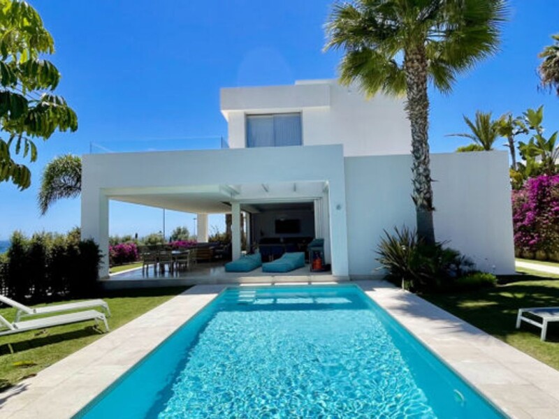 Luxurious, contemporary villa with sea views, in one of the most sought after areas in East Marbella: Torre Real, at just a few kilometers from central Marbella with the Puerto Banús marina less than ten minutes away. Located by the Rio Real Golf Club, designed by the legendary Javier Arana, considered the best Spanish designer of all time. With over 300 days of sunshine and microclimate that keeps temperature ideal for outdoor living, this is truly a golfer’s paradise. The house is a few minutes walk from Rio Real beach, an amazing fine golden beach where you can find Trocadero Arena beach club, with a restaurant open year-round. Nikki Beach and La Plage Casanis are a mere 10-minute drive away. Furniture not included in the asking price.
