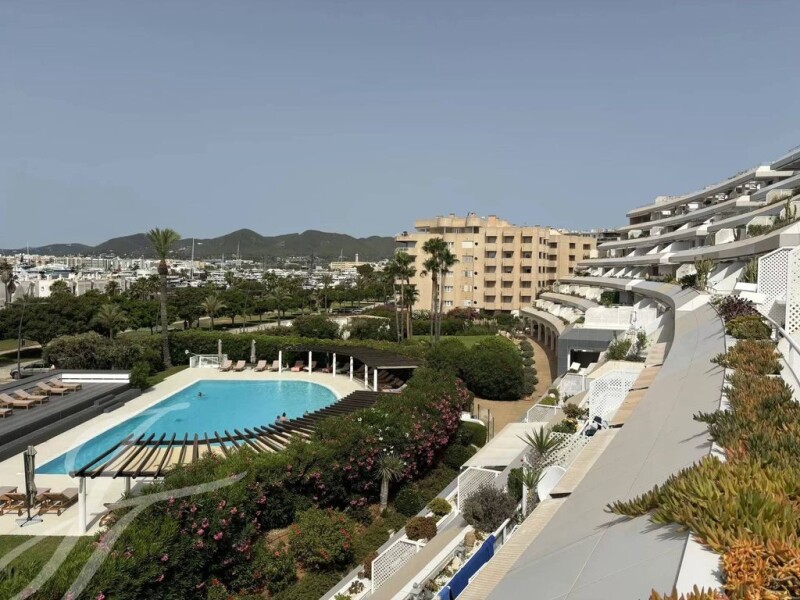 Experience unparalleled luxury in this stunning apartment located in the heart of Marina de Botafoch, one of Ibiza’s most iconic addresses. This elegant residence seamlessly combines sophistication with convenience, offering a lifestyle of unrivaled comfort. Spanning 150 sqm, the space includes two beautifully furnished double bedrooms, one with an en suite bathroom, a single bedroom, and a fully equipped open-plan kitchen that integrates effortlessly with the dining and living areas. From these areas, you can enjoy breathtaking views of the marina and historic Dalt Vila, making every moment a visual delight. The apartment also features 24-hour security, a dedicated concierge, and a communal pool, ensuring both safety and relaxation. Additional benefits include two private parking spaces in an indoor garage. Situated just a short walk from Talamanca Beach, this residence allows you to immerse yourself in the vibrant island life while enjoying serene seaside moments. With its perfect blend of luxury, comfort, and central location, this apartment offers an exceptional living experience.
