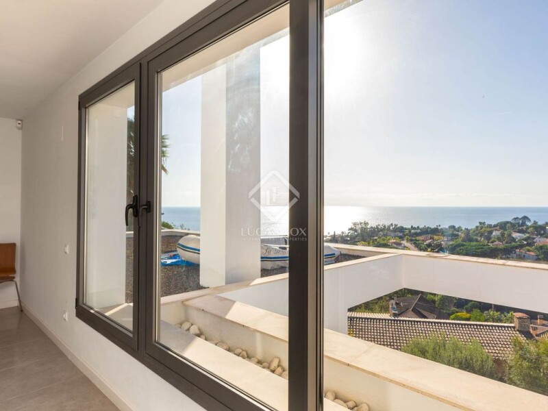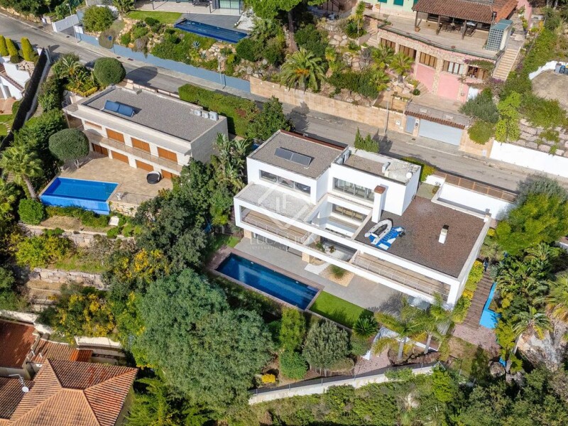 Lucas Fox presents this exclusive villa located in Cala Sant Francesc, one of the most prestigious and luxurious developments on the Costa Brava. This privileged enclave has a beach within walking distance and is close to the marina and the town of Blanes, with all essential amenities less than five minutes away by car. The development offers private security, for greater peace of mind and security. The property, built in 2013, is in perfect condition and stands out for its minimalist style with oriental touches. It has a plot of more than 835 m² and is layout on descending floors and offers impressive views. On the entrance floor , there is a large garage with capacity for two cars and additional space for motorcycles or other uses. On the middle floor , intended for the night area, is the main bedroom with dressing room and full bathroom with bathtub and shower, which enjoys panoramic views and access to a private terrace that connects to the garden. On this floor, there are also three bedrooms, two of them double and one single, with access to a shared terrace, as well as a full bathroom and a laundry room. There is the possibility of converting one of the bedrooms into another suite. On the lower floor , intended for the day area, there is a large living room with views and direct access to the pool. On this same level, the kitchen open to the dining room has a fireplace, a pantry and a guest bathroom. From this floor there is access to the summer dining room , the garden and the pool. This villa combines design, functionality and an exceptional location. Its large windows allow natural light to enter and the layout can be easily modified, if desired. It is located in a cul- access -sac that offers privacy, without sacrificing views of the surroundings. It is an ideal property for those seeking luxury and exclusivity on the Costa Brava.