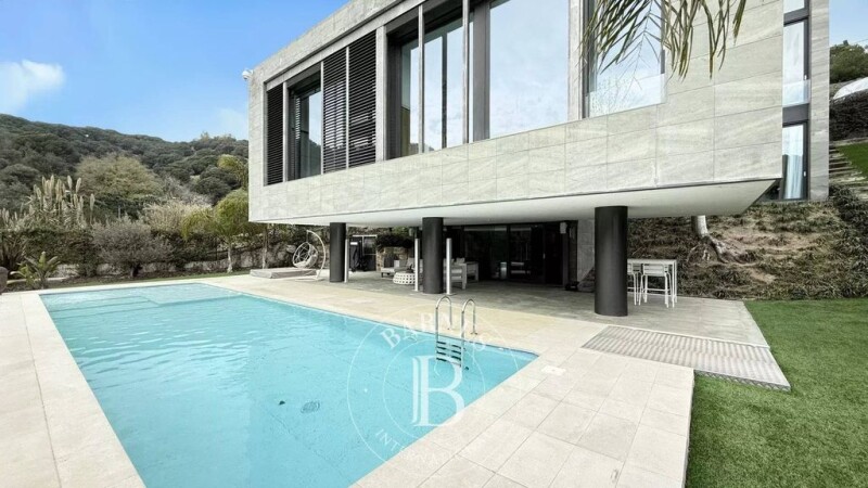 Barnes International presents this villa in one of the most sought-after areas of Alella, spanning 605 m², designed for those seeking luxury, privacy, and an unparalleled lifestyle. Situated on a 1,108 m² plot, its avant-garde architecture and stunning sea views create a home where every detail has been meticulously conceived. Distributed over three floors, connected by an elevator, the residence features four spacious double bedrooms, including a majestic master suite with a walk-in closet and a dream bathroom. A total of six bathrooms, versatile living spaces, and a double private garage complete its structure. Technology and innovation are seamlessly integrated into this residence: advanced home automation with remote control of all installations, security and video surveillance, armored doors, automated lighting, Grandhermetic blinds, fiber optics, osmosis system, central vacuum, electric heating, and ducted air conditioning. The highest quality materials and finishes stand out, including Porcelanosa stoneware floors and recently renovated bathrooms. The main floor features a living room with double-height ceilings, bathed in natural light, currently used as a study. Adjacent to it, an open office and a guest bathroom. The kitchen, a true gourmet dream, is equipped with the latest innovations and opens onto a terrace with spectacular views of the sea and mountains. The night area offers three double bedrooms, including the master suite with a jacuzzi and a hydromassage bathroom. A living room with garden views, another bathroom with a shower, an additional bedroom/office, and a laundry room complete this level. The lower floor is designed for wellness and leisure, featuring a generously sized gym, direct access to the porch, an exclusive chill-out area, a garden with artificial grass, and a designer saltwater pool. The outdoor area is completed with a barbecue, a full bathroom, and a machine room. Located in a prestigious mountain urbanization, this property is a tailor-made masterpiece, carefully updated since its construction in 2005. Alella, in the heart of Maresme, is one of the most exclusive towns on the Barcelona coast. Just 20 minutes from the city and with excellent highway and public transport connections, it offers an unbeatable location for those seeking tranquility without sacrificing proximity to the metropolis. Maresme is known for its high quality of life, with an exceptional climate, idyllic beaches, and a privileged natural environment. The area boasts prestigious international schools, renowned golf clubs, marinas, exclusive gyms, and a varied gastronomic scene with high-end restaurants. All this makes Alella a perfect enclave to enjoy a sophisticated and fulfilling lifestyle. This house is not just a residence; it is a statement of exclusivity. Contact us to discover your new home.