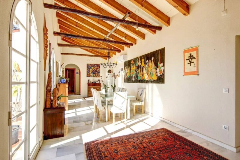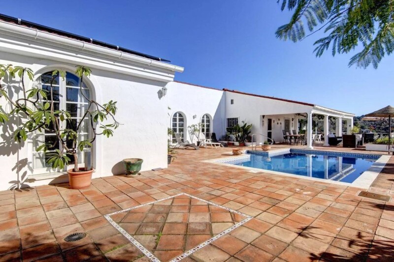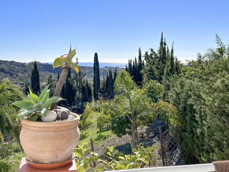 Captivating country villa located in the picturesque sector of El Velerin, Estepona, surrounded by nature and panoramic views of the Mediterranean. The property showcases an idyllic lifestyle, offering privacy, seamlessly combining tranquility with accessibility. Conveniently situated just minutes from Laguna Village and Estepona centre. Close to nearby attractions such as top golf courses, pristine beaches and vibrant shopping areas. Malaga airport is 1 hour away. The main house features vaulted ceilings adding the sensation of space throughout the home. It comprises a fully fitted kitchen, spacious living room, another room currently utilised as an office, storage room, utility room, 2 bedrooms and 2 bathrooms. Additionally there is a guest house offering 2 bedrooms, 2 bathrooms and a fully fitted kitchen. The living room opens up to a private terrace that captures beautiful sea views. The houses are set on a plot of 5520 sq.m offering a treasure trove of mature fruit-bearing trees such as mango, avocados, oranges, lemons, grapevines and papayas. There is an exceptionally spacious terrace and a swimming pool. Other features include air conditioning, underfloor heating, marble floors, security entrance, outdoor irrigation system, automated gate and solar panels and photo-voltaic for hot water that underscore the property's commitment to eco-friendly living. The driveway that can accommodate parking for 6 or more vehicles and a workshop with storage space adds practicality to the estate's offerings.