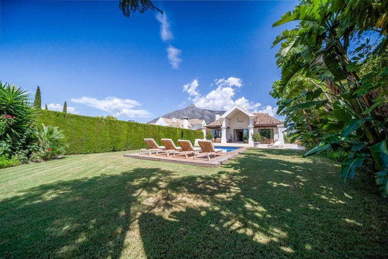 Totally renovated villa Las Lomas for sale with possibility to rent in Las Lomas de Marbella Club, Marbella This stunning villa Las Lomas is located in the prestigious area of Las Lomas del Marbella Club, on the coveted Marbella Golden Mile in Marbella, Malaga. With its prime location, this property offers the perfect combination of luxury, privacy, and convenience. The villa boasts 5 spacious bedrooms, each with its own en-suite bathroom, providing ample space for family and guests. The property spans across a generous plot of 1,093m², with a built-up area of 578m², ensuring ample living space for all. As you enter the villa, you are greeted by a grand and elegant entrance hall, leading to the various living areas. The living room is flooded with natural light, thanks to its large windows that offer breathtaking views of the surrounding mountains and the Mediterranean Sea. The fully furnished villa features a fully fitted kitchen, equipped with all modern appliances, making it a dream for any cooking enthusiast. The dining room provides the perfect space for entertaining guests, while the covered and uncovered terraces offer additional options for outdoor dining and relaxation. Las Lomas also offers a private pool and garden, where you can enjoy the sunny climate of Marbella. The pool area provides stunning views of the mountains and the sea, creating a serene and tranquil atmosphere. The villa also comes with a private garage, ensuring secure parking for your vehicles. Other notable features of this luxury villa include air conditioning, a utility room, a guest room, an alarm system for added security, and panoramic views of the surrounding landscape. Lomas has been recently renovated and refurbished, ensuring that it meets the highest standards of modern living. With its close proximity to amenities, transport links, shops, and schools, the villa Lomas offers the perfect combination of luxury living and convenience. Whether you are looking for a permanent residence or a holiday home, villa Lomas is truly a gem on the Marbella Golden Mile.