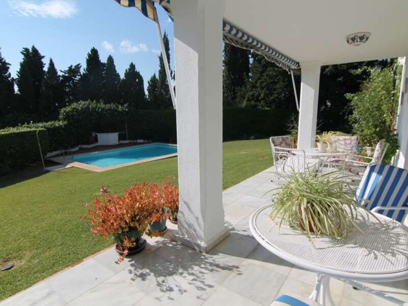 Villa with adjacent plot in Nagüeles, just below Sierra Blanca, the most sought-after Golden Mile residential area. This south facing property has much potential and is divided into 3 levels. Ground floor consists of: entrance hall; living room with fireplace and access to a large porch and garden with pool; spacious kitchen with dining area, separate laundry and access to a covered terrace with another dining area; Upstairs: master bedroom suite with dressing room and a sunny terrace overlooking the sea; 3 further bedrooms with a shared bathroom, two with a small balcony. Basement: garage for 4 cars. Beautiful tropical garden with pool and the possibility of extending the garden, build a guest house or extend the existing property to earn square meters adjacent to the plot included in the price. It has automatic irrigation and solar panels for hot water. An exceptional property with great potential for expansion and renovation in one of the best areas of Marbella.