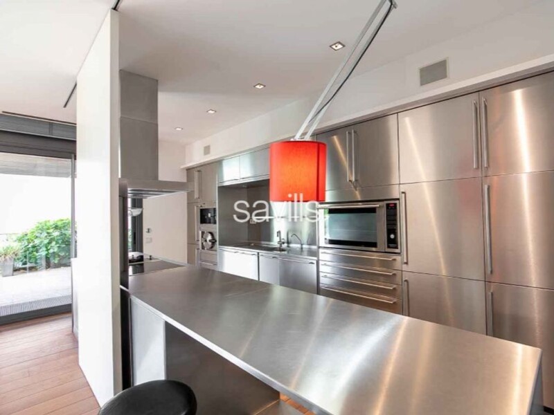 Savills presents this bright 492 m² property with sea views and views of Parc de Collserola in Ciudad Diagonal, Esplugues. The residence is located within an exclusive 9,300 m² complex featuring landscaped gardens, a pool, and 24-hour security. Conveniently located near international schools and with excellent connections to Barcelona and the airport. The property is distributed across four floors connected by an interior elevator and stairs. On the main floor, there is an entrance hall, a large living room with views and access to the garden, a spacious kitchen with a central island and an independent dining area also with access to the garden, and a guest toilet. The upper floor features a large master suite with a full bathroom, two double bedrooms with balcony access that share a full bathroom, and another bedroom with a separate full bathroom. On the top floor, there is a spacious 80 m² multipurpose room with a full bathroom and access to a fantastic 30 m² solarium terrace. The lower floor includes a garage with space for four cars plus room for 1-2 additional cars in the spacious exterior entrance, a large pantry, a laundry room, a service area with a bedroom and full bathroom, and a utility area. This modern property boasts large windows that allow natural light to flood in, offering full views of the surrounding environment. The home is equipped with air conditioning and ducted heating, American oak wood flooring, built-in wardrobes, water osmosis and softening systems, and a security alarm. Please don't hesitate to contact us to visit this warm and luminous residence.