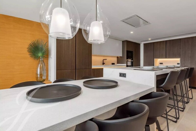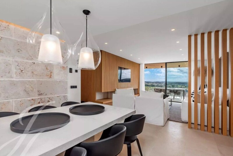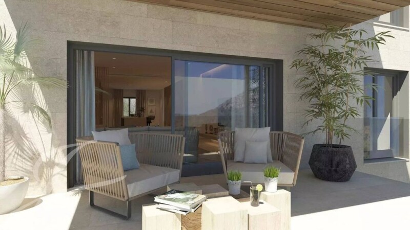 These modern apartments are being built in Santa Ponsa. They have fantastic panoramic views of Santa Ponsa and the golf course, with east-south-west orientation and beautiful terraces of 18 m2 to fully enjoy the Mediterranean lifestyle. The apartments have 4 double bedrooms and 3 bathrooms, 2 of them en suite, equipped with high quality materials. A bright living room and dining room, as well as an open and modern kitchen with appliances and a kitchen island combined with materials of the highest quality give you comfort and well-being. The complex has 24 residential units, a community pool and a Mediterranean garden. A subway parking space is included in the sales price. The project will be completed in 2025. Santa Ponsa, a town located on the southwest coast of the island of Mallorca. Known for its family atmosphere, white sandy beaches and crystal clear waters that attract tourists from all over the world. The heart of Santa Ponsa is its magnificent beach, which stretches along a crescent-shaped bay and offers an idyllic setting to relax. You can enjoy a variety of water sports, such as water skiing, diving and kayaking. Adjacent to the beach is the always lively promenade, which invites to long walks, restaurants, bars and stores. Here, visitors can indulge in delicious fresh seafood dishes and local specialties, while enjoying the breathtaking sea views. For golf lovers, Santa Ponsa has several prestigious courses. And for boating enthusiasts, there is the Club Nautico Santa Ponsa, a marina with a relaxed, family-friendly atmosphere. Santa Ponsa is a charming tourist destination that combines paradisiacal beaches, a wide range of activities and delicious gastronomy.
