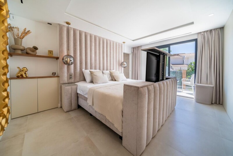 Spacious Villa for short-term rent in Nagueles, Golden Mile, Marbella This stunning villa is located in the prestigious area of Nagüeles, in the heart of the Marbella Golden Mile, in Marbella, Malaga. With 5 bedrooms and 6 bathrooms, this property offers ample space for a large family or those who love to entertain. As you enter the villa, you are greeted by a grand entrance hall that leads to the spacious living room with a fireplace, perfect for cosy evenings. The villa boasts a fully fitted kitchen, equipped with top-of-the-line appliances and a dining area for formal meals. The property features a basement, which can be used as a guest room or additional living space, as well as a storage room and a laundry room. The villa is fully furnished and in excellent condition, ready for you to move in and start enjoying the luxurious lifestyle. Outside, you will find a private garden with a covered terrace, perfect for al fresco dining, and a private pool where you can take a refreshing dip on hot summer days. The villa also offers stunning views of the mountains and the surrounding landscape. Other notable features of this property include underfloor heating throughout, air conditioning, an alarm system, and internet connectivity. The villa also has a private garage and is close to amenities, transport links, schools, and the town centre. With its luxurious design, prime location, and an extensive list of features, this villa is truly a great home for rent.