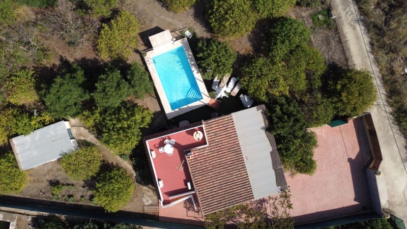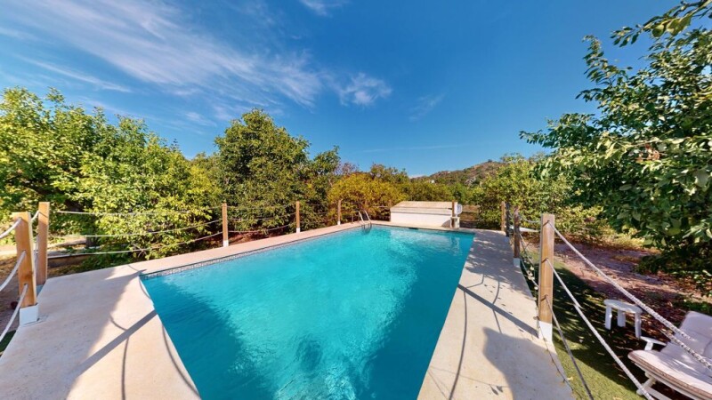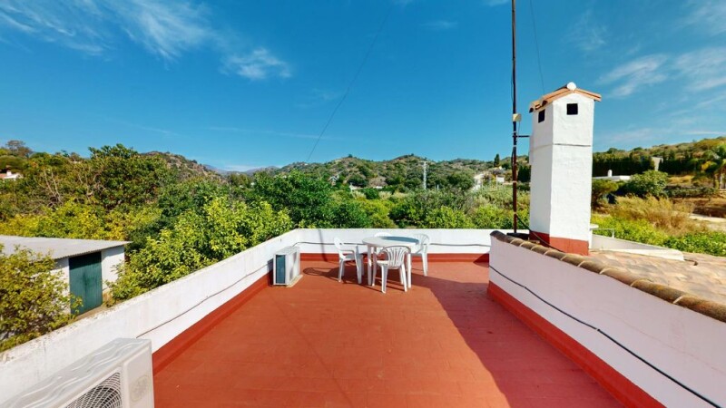 The location The villa is located in Estepona. Flamingos Golf Club is 5.2 km away and Marbella Club Hotel Golf is 6.2 km away. Hacienda Beach is 2 km away and Playa el Padron is 3 km away. Malaga Airport is 51 minutes away and Gibraltar Airport is half an hour away. All distances are calculated by driving. The property The villa is built on one floor and has 2 bedrooms and 1 bathroom. It has a large courtyard and a beautiful garden. An outdoor pool with plenty of sun beds. A beautiful rooftop terrace with great views. A large covered terrace. Main Floor From the entrance you dive into the spacious and bright living and dining room area. The space has a real fireplace. The kitchen is semi separated and it is fully equipped. 2 bedrooms with a shared bathroom.
