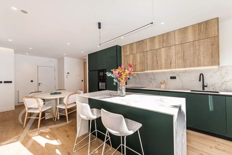 John Taylor offers this magnificent property in one of the most sought after neighborhoods in the Chamartin area. The property is located on the second floor of a four-storey building that is part of a private urbanization surrounded by gardens and green areas. The apartment has an area of 202 square meters, is fully renovated with quality materials and meticulous design, each space has been optimized to provide warmth, functionality and comfort. Its excellent southwest orientation guarantees exceptional luminosity throughout the day. Upon entering the house, an elegant entrance hall gives way to a spacious living room with large windows, which integrates seamlessly with a modern open kitchen. Equipped with high-end appliances, the kitchen has a large central island, ideal for enjoying moments with family or guests. The night area houses four spacious bedrooms with fitted closets, two of them with en suite bathroom and exterior. In addition, the house has a third full bathroom and an interior patio, providing even more spaciousness and luminosity to the whole. Among its exclusive qualities are an advanced home automation system in all rooms, electric blinds with Cortizo enclosures in each window, oak veneered doors, as well as a fully equipped custom kitchen and a state-of-the-art washer-dryer, among other details that guarantee maximum comfort and functionality. It is important to highlight that the entire facade of the buildings that make up the urbanization have been refurbished with high-end materials. This magnificent property has a parking space, storage room and access to the communal swimming pool, as well as concierge service on the property. We are facing a property that meets all the requirements to make it an ideal home: good communication, comfort and tranquility at your fingertips.