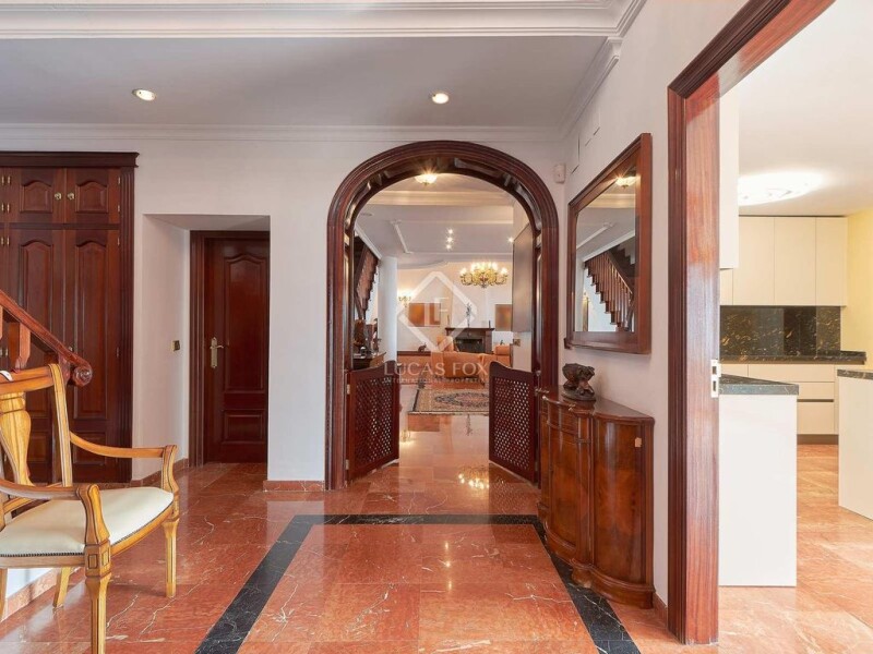 Lucas Fox is pleased to present this majestic villa , unrivalled by any other in the city. It is located at the foot of Mount San Antón, in the exclusive development of Pinares de San Antón, and offers everything you need to live: space, southerly aspect, sea views, harmony with the surroundings, elegance and privacy, among others. This impressive villa is situated on a 4,000 m² plot , an unusually large size for the city of Malaga. It has 970 m² built, which are distributed over three floors. It has five bedrooms, all with private bathroom, a toilet, an study, four spacious living rooms, two fully equipped kitchens and five terraces. And in its enormous exterior area, it has gardens, a swimming pool, three jacuzzis, Finnish and Turkish saunas, a gym and a large garage for several vehicles. The property is accessed on the ground floor, located in the south wing, by a staircase that leads to the main entrance. Once inside, there is an entrance hall and immediately after, a spectacular and elegant living room with a fireplace and high ceilings. This living room is connected to a fantastic porch, as well as to the large, fully equipped kitchen. From the hall, an elegant staircase leads us to the first floor, which houses the night area, with three spacious and bright bedrooms with private bathrooms. The main bedroom also has a luxurious jacuzzi from which you can contemplate the delicate Mediterranean sunsets. This floor could actually function as an independent property , as it has a charming living room, a fully equipped kitchen, as well as a guest toilet. Following the stairs up, we find the second floor, where there are two bedrooms with their private bathrooms. And for greater comfort and independence, on this floor there is a small living room and an elegant study that includes a beautiful terrace. From the entrance hall , the stairs that descend lead us to the lower floor , dedicated to the recreation and relaxation area, as it has a spacious games area, a gym and two saunas, the Finnish one and the Turkish one. And so that nothing is missing, this floor also has a living room, so that privacy and independence are never a problem. From its well-kept areas , you can contemplate the sea as far as the eye can see, between open patios and fountains. Or if you wish, you can do so from its original rounded swimming pool, built into the rock of the mountainside or from any of its terraces and corners, which include a chill-out area and a large barbecue area with a full kitchen. It features floors mostly made of white and red marble, which are mixed with warm beige stone floors, in perfect harmony with the exclusive woods that have been used in its interior design. This property, built by its owner, was designed to satisfy the most demanding, those who want a large property located in a large garden , with spectacular views and less than 20 minutes from the centre of Malaga or its international airport. A unique and one of a kind opportunity.