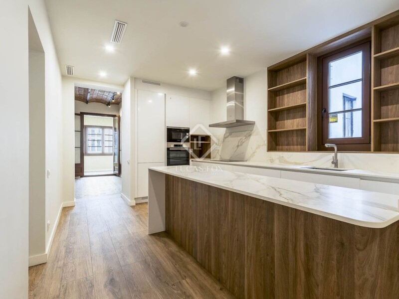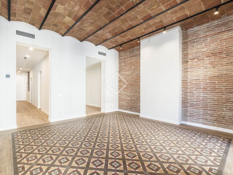 We present this beautiful recently renovated 150 m2 high-rise apartment in the heart of Barcelona, 10 minutes walk from the emblematic Passeig de Gràcia. The original elements of the apartment have been carefully restored, such as the original hydraulic floors, the Catalan vaulting reinforced with beams, the carpentry, the windows and the exposed brick walls, among others. It is distributed in a large living room with access to a large and bright gallery from which you can also access the master suite with bathroom. It also has a semi-open area to the living room, which can be used as both a dining room and an study. The kitchen is equipped with Bosch appliances and is open to the corridor with a central island. The property has two more bedrooms and a second full bathroom with a shower. It has a cold-heat pump through ducts. It is located in a period building in perfect condition with an elevator.