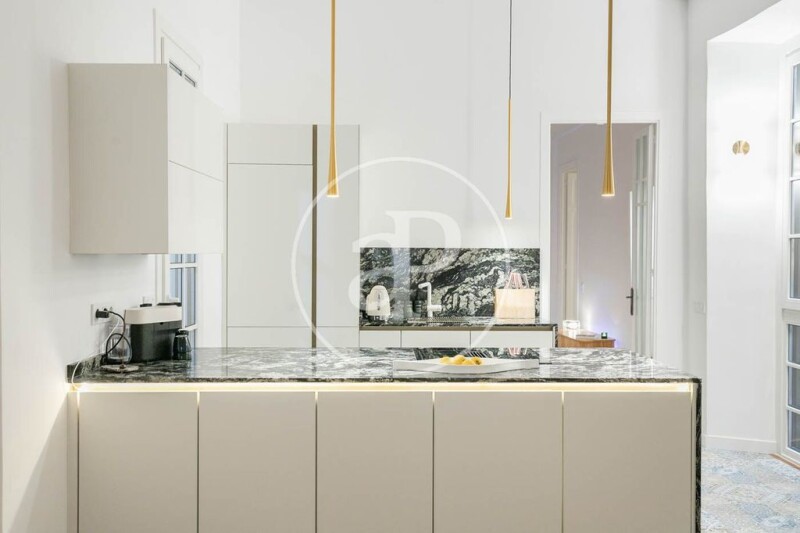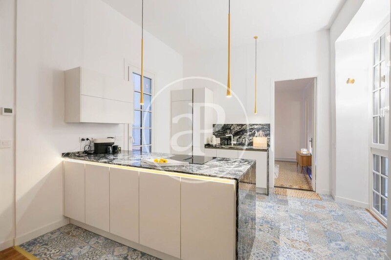 Spectacular fully renovated apartment in the heart of El Born, overlooking the Basilica of Santa Maria del Mar, near the Santa Caterina Market and Via Laietana, surrounded by bars, restaurants, and local shops. This magnificent property was completely renovated in January 2025, using high-quality materials that combine functionality, design, and exquisite finishes. The day area features a spacious living-dining room with an open-plan kitchen equipped with high-end AEG appliances, including a multifunction oven, microwave, and state-of-the-art induction cooktop, as well as a warming drawer, a wine cellar, a custom-made display cabinet in the dining area, and a balcony with spectacular views of the Cathedral. The night area consists of two double bedrooms. The master suite includes a full bathroom with designer Italian faucets, a dressing area, and access to both an exterior balcony and an interior patio. The second bedroom, also with a full bathroom and storage space, features a small living room and a kitchenette, allowing guests to enjoy a fully independent living area. The apartment boasts high ceilings, two interior patios, beautiful hydraulic and parquet flooring that add warmth and elegance, double-glazed windows, a guest restroom, air conditioning in both bedrooms, and designer radiators that add a sophisticated touch. The owner is an interior designer, and the entire apartment has been renovated with carefully selected furniture, high-end lighting, and premium materials, paying attention to every detail to create an elegant and welcoming home. If you are interested in learning more or scheduling a visit, do not hesitate to contact us. This property has everything you need to become your new home in the heart of Barcelona.