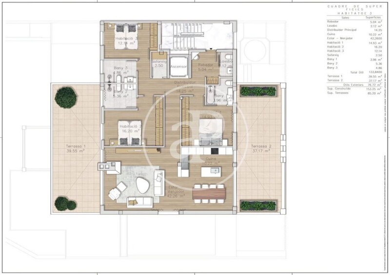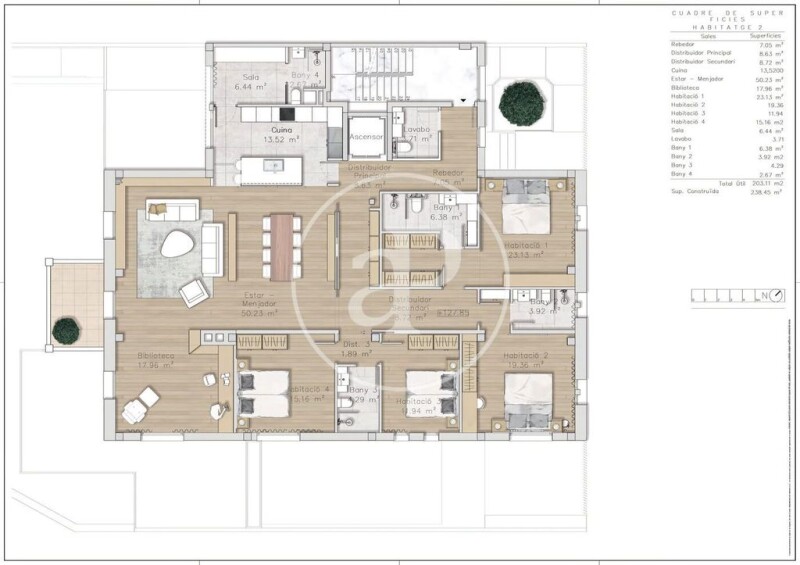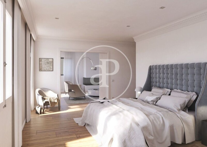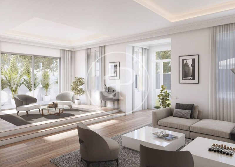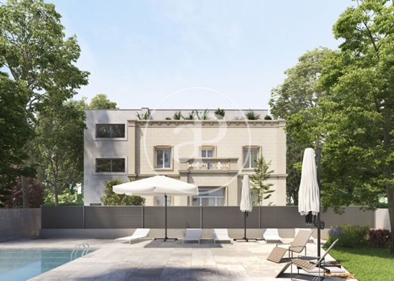 Two exclusive homes with avant-garde design. The building preserves the modernist façade with the aim of combining contemporary aesthetics with the preservation of historical and cultural elements. This approach allows to create a harmonious fusion between old and new, incorporating contemporary technologies and designs without losing the connection with the architectural heritage. The property has parking in the same building. The ground floor has 300m2 built with more than 50 m2 of outdoor spaces. It is distributed in 4 suites, one with large dressing room, a guest bathroom, large living room with access to the garden and semi-open kitchen with full laundry with bathroom that could also be enabled as a maid's room. It also has a large multipurpose space on the lower floor, with bathroom and storage room, with natural light and direct access to the parking. This first floor has 3 accesses. One, very stately keeping the original door from the street, another from the communal entrance and from the elevator. The second floor has 240 m2 built. It is distributed in 4 bedrooms, two en suite and one with large dressing room, 3 bathrooms, a guest bathroom, large living room with access to the terrace, library, semi-open kitchen and adjoining room with bathroom to the kitchen for laundry or service room. The finishes have been made with modern and sustainable materials taking care of the smallest detail. The distribution of the two houses has enhanced the open and luminous spaces, receiving sun practically all day long. The heights of the houses are over 3.5 meters maintaining the essence of the Palacete. Aluminum exterior carpentry, elevating sliding balconies, motorized blinds, double glazing and air chamber, 2.1 m high doors lacquered in white, light-colored parquet, kitchen with large porcelain stoneware. Kitchen furnished in white wood, high-end appliances, oven, 60 cm induction, extractor hood. Low consumption and energy efficiency systems have been used as a priority in the construction. Underfloor heating and air conditioning with room control. Maximum sustainability with the production of 70% of the hot water demand through renewable energies. Television broadcasting outlets in all rooms. All homes have parking spaces in the same building, on floor -1, with easy access from the communal elevator of the building.