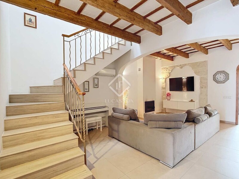 Lucas Fox presents this beautiful 122 m² house built on a 639 m² plot and a short distance from the Contramurada. The property is distributed in two floors. The ground floor welcomes us with an entrance hall that gives access to a spacious living room with a wood-burning fireplace, a dining area with lots of natural light and access to the exterior patio- garden , a fully equipped kitchen, an study -type bedroom , bathroom and utility room. Through a comfortable staircase, we reach the second floor where we find three double bedrooms with built-in wardrobes, one of them with access to an open terrace and another full bathroom . All the finishes in the house are of high quality and it also has air conditioning and hot/cold pump heating. Exterior we have an impressive garden, a pergola, a wonderful 34 m² pool, an annex building with a barbecue, a bathroom and a storage room. An ideal property to live all year round or spend time with family or friends. Contact us for more information or to arrange a visit.