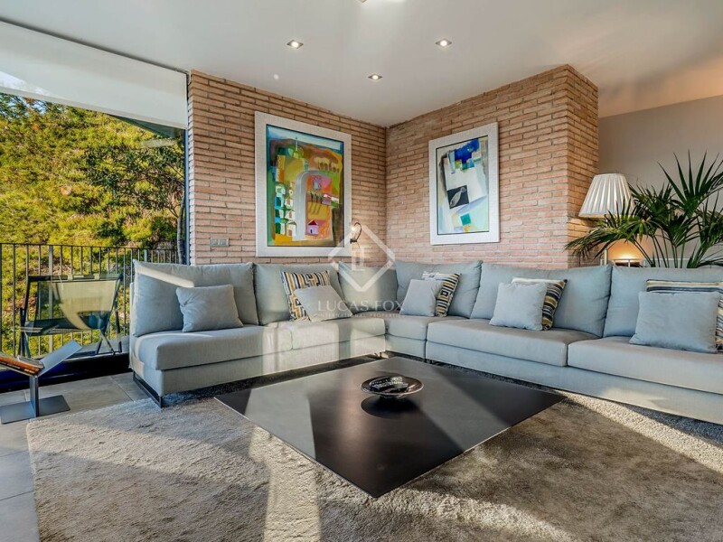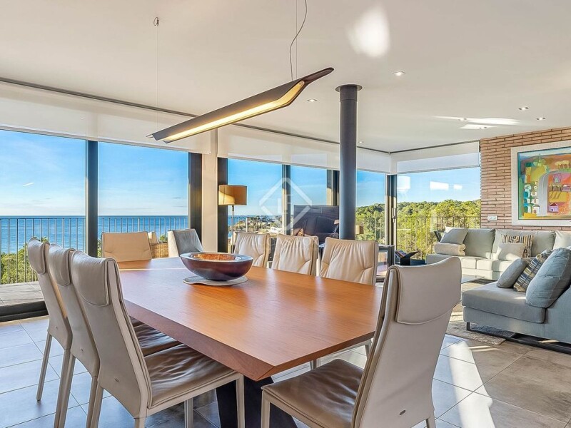 As in the most idyllic stories, this villa embodies the most valued element of beachfront living: its views, set against the blue horizon of the Mediterranean Sea, its indefinite companion. This gem has been built in a unique location in the upper area of Playa La Mora and perfectly adapted to the terrain, like a cliff overlooking the water. This stunning dream property combines modern design with high-quality materials, offering an exclusive retreat in a natural setting with utmost privacy. The day area is at street level, and the rest of the section is at street level. Inside, a spacious living-dining room and a perfectly connected kitchen boast admirable sea views from every corner. The terrace also boasts panoramic views of the coast and the pine forest of the "Bosc de la Marquesa." It's a delightful exterior space to enjoy the fresh air and the lapping waves. Through their glass windows, these spaces receive abundant natural light, and an elegant central fireplace adds warmth and comfort, creating a cozy atmosphere, ideal for sharing unforgettable moments with loved ones. A beautiful bathroom with a skylight in the ceiling for natural light, and a separate utility room annex to the kitchen complete this floor . We return to the entrance hall and descend to the lower floor with its four bedrooms and two bathrooms. Imagine waking up every morning to the ocean breeze. The bedrooms face another generous terrace with direct access to the exterior. The main bedroom is en suite. All bedrooms have built-in closets, and a fourth bedroom serves as a shared dressing room. Below, on the top level, there is now an open-plan living space with a bathroom, games room, a study, a gym, and a home theater. It's worth noting that this space is planned to be converted into three more bedrooms. Its floor-to-ceiling windows open onto the exterior with the idyllic pool, surrounded by shrubs and several palm trees. The house includes a project to incorporate a lift and connect its three floors. There is a car park located outside. The pool operates with an automated saltwater chlorinator system. Contact us for more information or to arrange a personalized tour to admire this stunning beachfront villa in Tarragona on the Costa Dorada.
