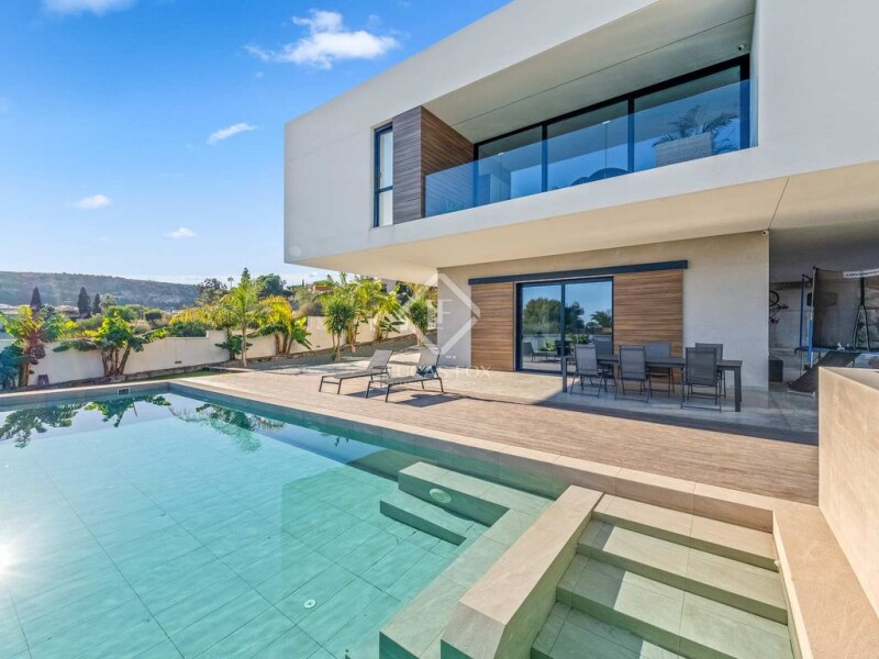 Discover the epitome of modern living in this newly constructed, five-bedroom masterpiece located in the heart of Alicante. This home is not just a residence; it is an embodiment of sophistication, efficiency, and ecological mindfulness. Immerse yourself in the seamless blend of contemporary design and cutting-edge technology, all crafted with the finest materials available. Step into a world where comfort meets sustainability, offering a lifestyle that is both luxurious and environmentally conscious. On the ground floor, five spacious bedrooms and four bathrooms create an inviting space for family and guests. The open kitchen seamlessly integrates with the living room, forming the heart of the home, while providing a stunning terrace with panoramic views of Alicante. Venture to the lower floor, where a summer kitchen, additional living space, an office, and a bathroom await. From here, there is access to a garden adorned with banana trees, leading to a 12-metre swimming pool – the perfect tropical oasis. Embrace year-round comfort with underfloor heating on concrete floors, complemented by solar panels, contributing to an impressive A-grade energy efficiency certificate. Smart water management takes centre stage with a 20,000-liter tank for irrigating and filling the swimming pool, showcasing an intelligent and resourceful approach to water usage. The house is wrapped in advanced insulation, ensuring optimal temperature control and energy efficiency. Beautiful furniture, selected with precision, enhances the modern design, while the structure of the house, built with thick, durable concrete, ensures longevity and stability. The white and wooden facade, not only adds natural beauty but also eliminates the need for constant maintenance. Feel secure with top-notch security windows and automatic blinds that enhance privacy and peace of mind. Indulge in the ambient glow of indirect LED lights, illuminating every corner of the house. Call us today to arrange a viewing!.