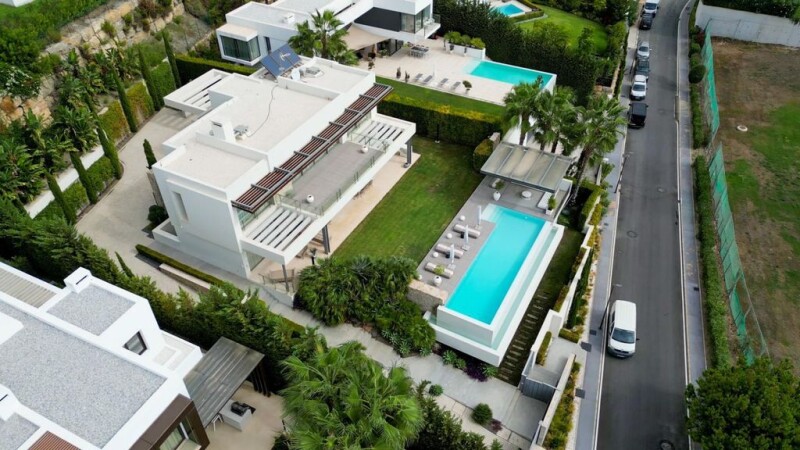 Exceptional Luxury Villa for Sale in La Alqueria, Benahavis, Malaga Nestled in the prestigious La Alqueria area of Benahavis, Malaga, this remarkable villa offers a unique blend of luxury and natural beauty. Spread across a generous plot of 1,423m², the property provides an expansive living space with captivating views of the picturesque countryside, majestic mountains, and a scenic golf course. With 5 bedrooms, 5 bathrooms, and 2 additional toilets, this villa is thoughtfully designed to accommodate both family and guests. Upon stepping inside, you'll be greeted by an elegant entrance hall that gracefully leads to the living and dining areas. The well-appointed open-plan kitchen is fully equipped with modern appliances and boasts a separate utility room for added convenience. The villa also features a versatile basement that includes a home gym, a cosy cinema room and a fun-filled games room. One of the standout features of this property is its private infinity pool, offering a refreshing oasis to cool off and unwind during the hot summer days. The spacious terrace, spanning 147m², provides ample space for outdoor dining entertainment and offers mesmerizing panoramic vistas of the lush surroundings. Additional amenities of this villa include air conditioning, parquet floors, double-glazed windows, and a private garage. The property is nestled within a secure gated community with round-the-clock security service, ensuring a peaceful and private living environment. Conveniently positioned close to shops, essential amenities, and transportation links, this villa effortlessly combines luxury, comfort, and practicality. Experience the pinnacle of luxury living in La Alqueria with this exceptional villa.